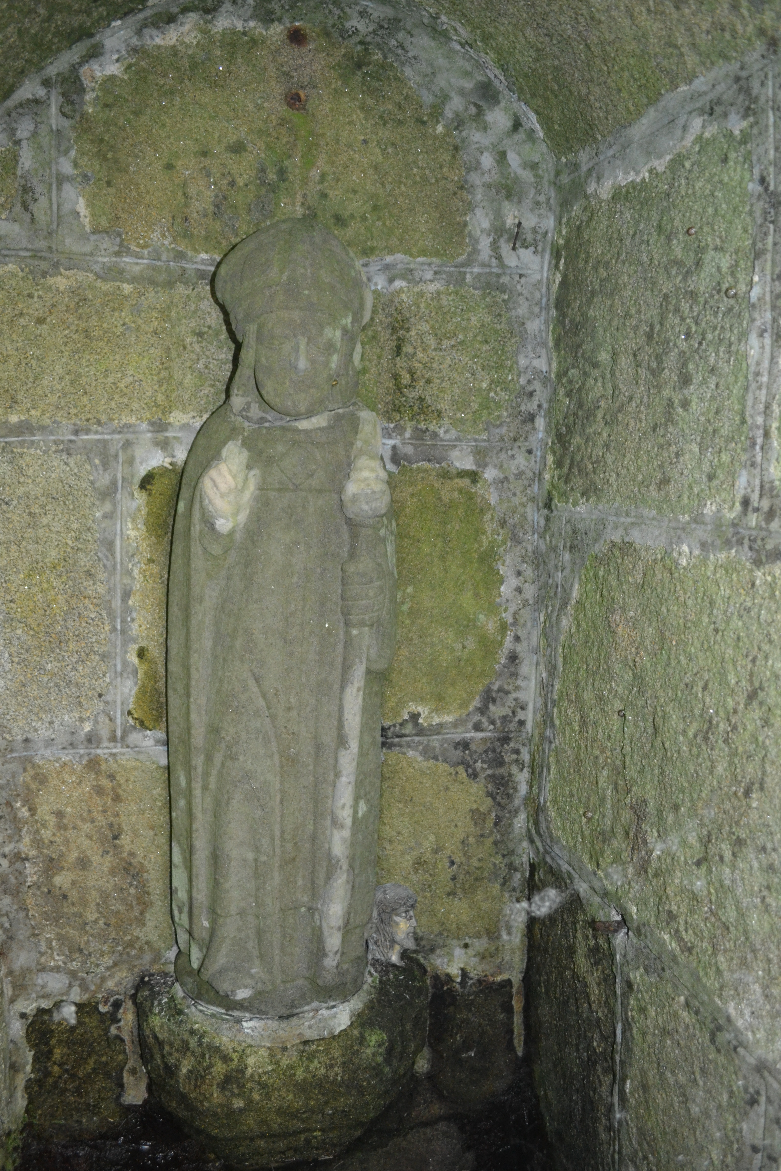 Détail de la statue de saint Budoc. (2014)Immatriculation