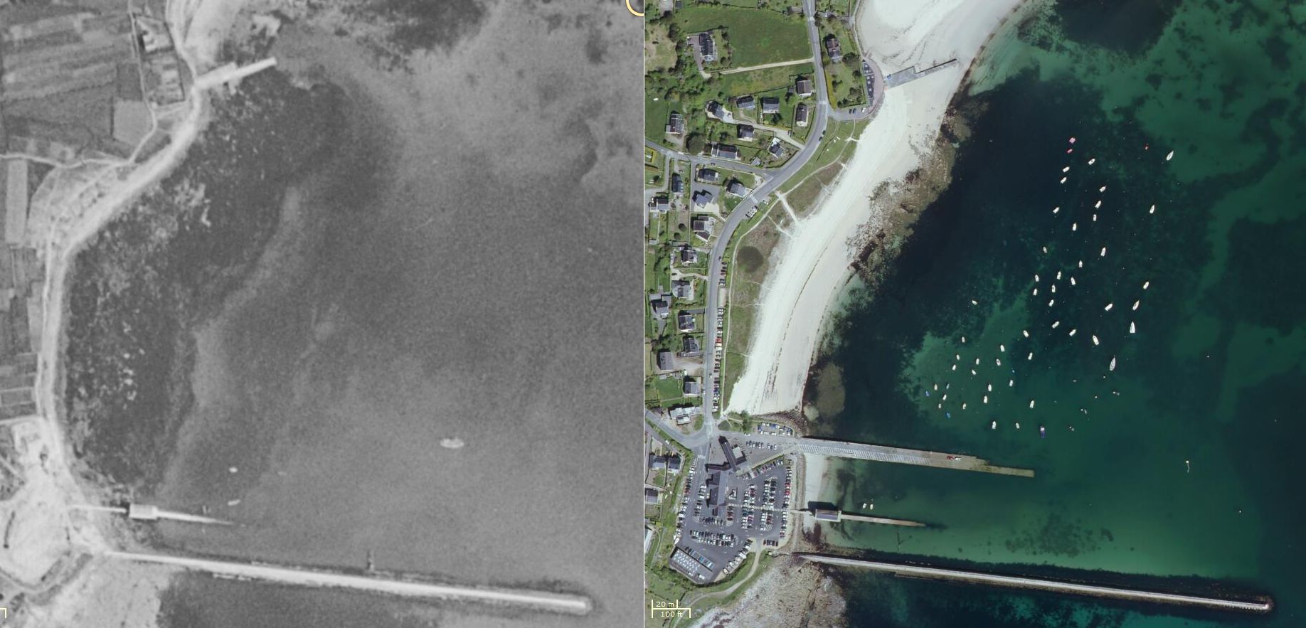 Evolution de l'ensablement de la zone portuaire (geobretagne 1950)Immatriculation