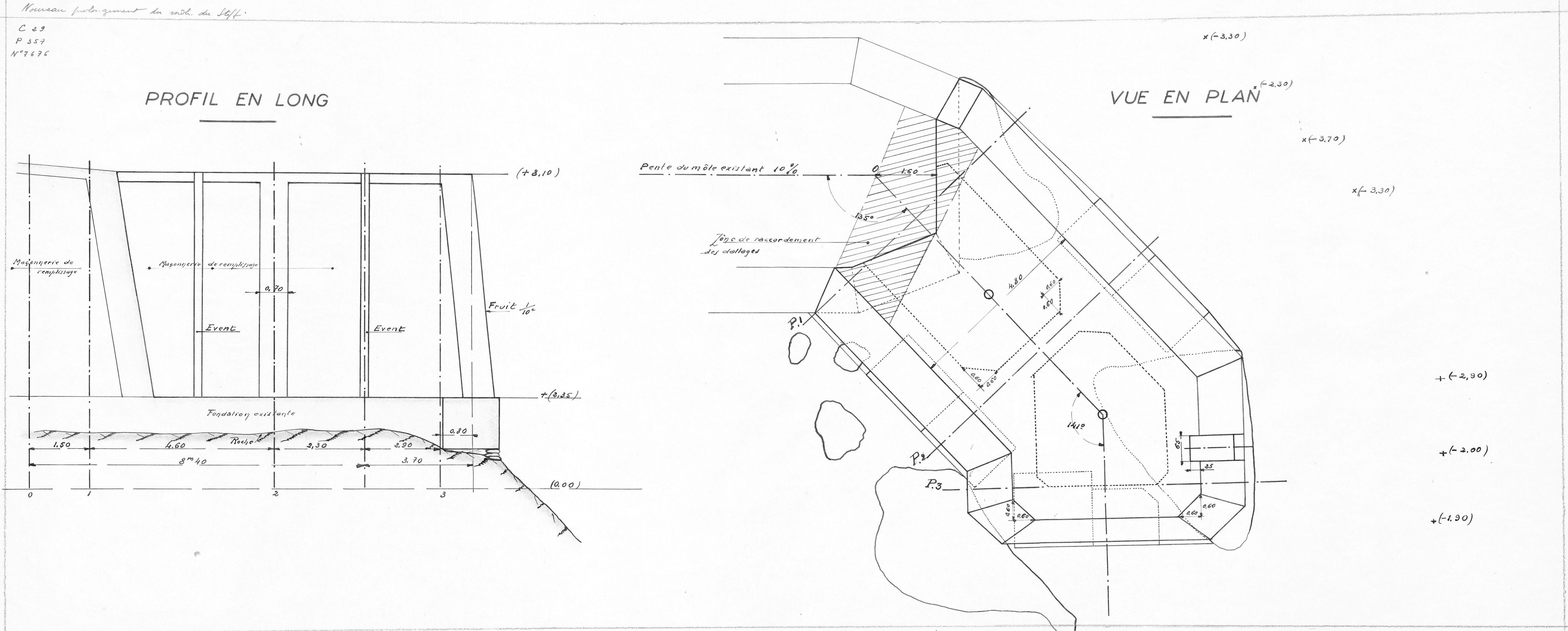 Plan et profil du second prolongement du môle (non daté)Immatriculation