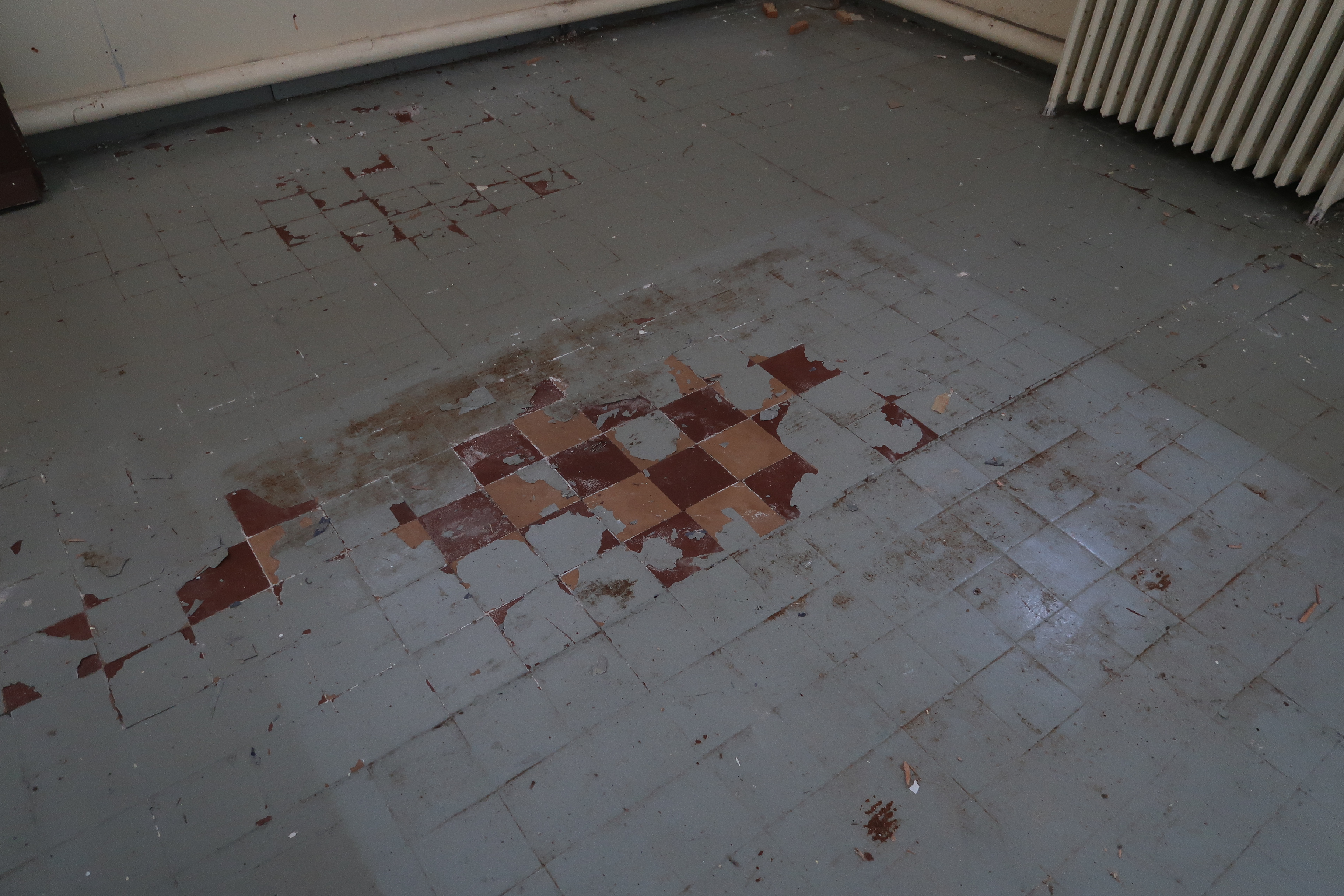 Intérieur, rez-de-chaussée, sol carrelé, puis peint (détail)Immatriculation