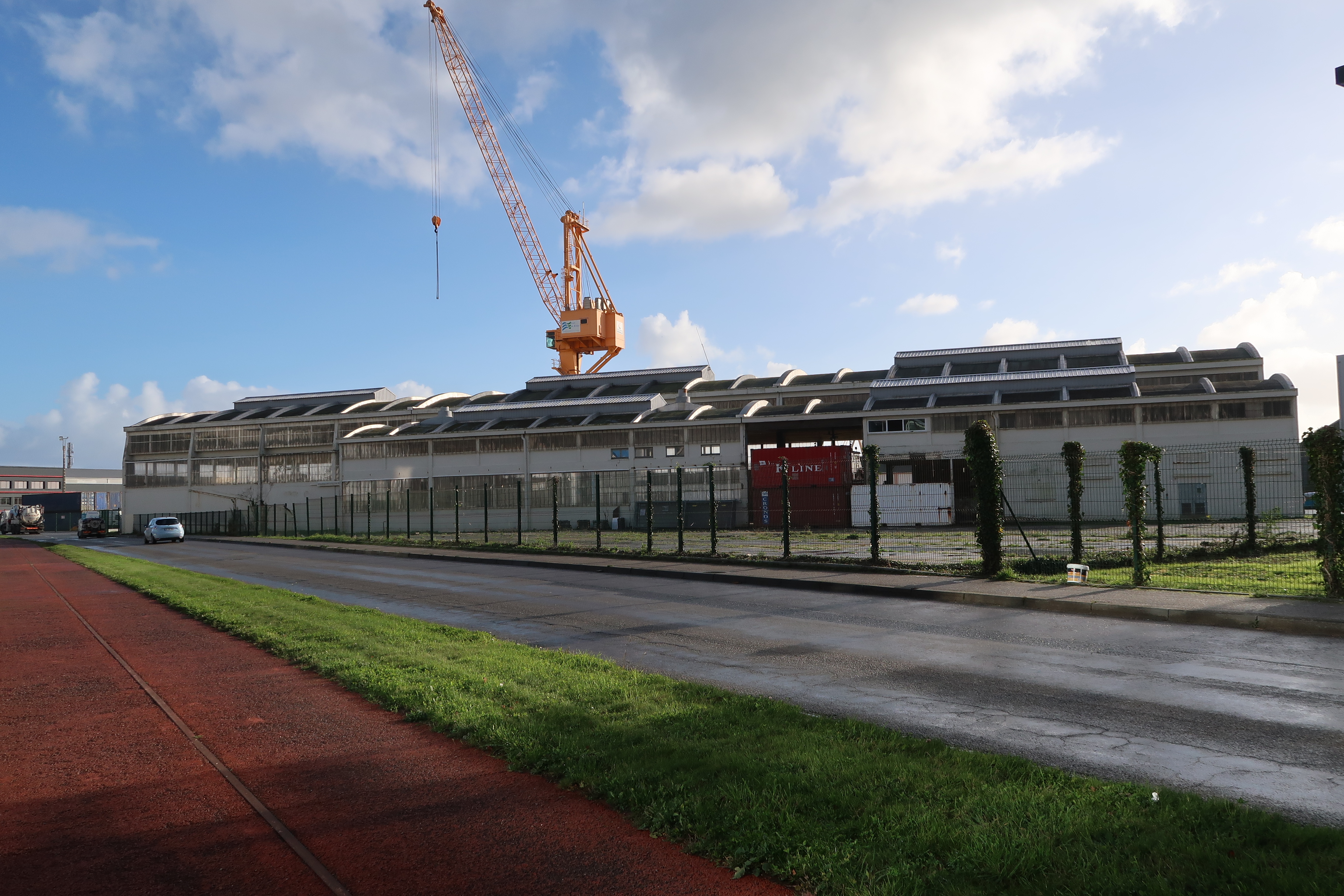 Hangar de réparation, ancien atelier Dubigeon, façade nord, piste cyclade et rue de l'ElornImmatriculation