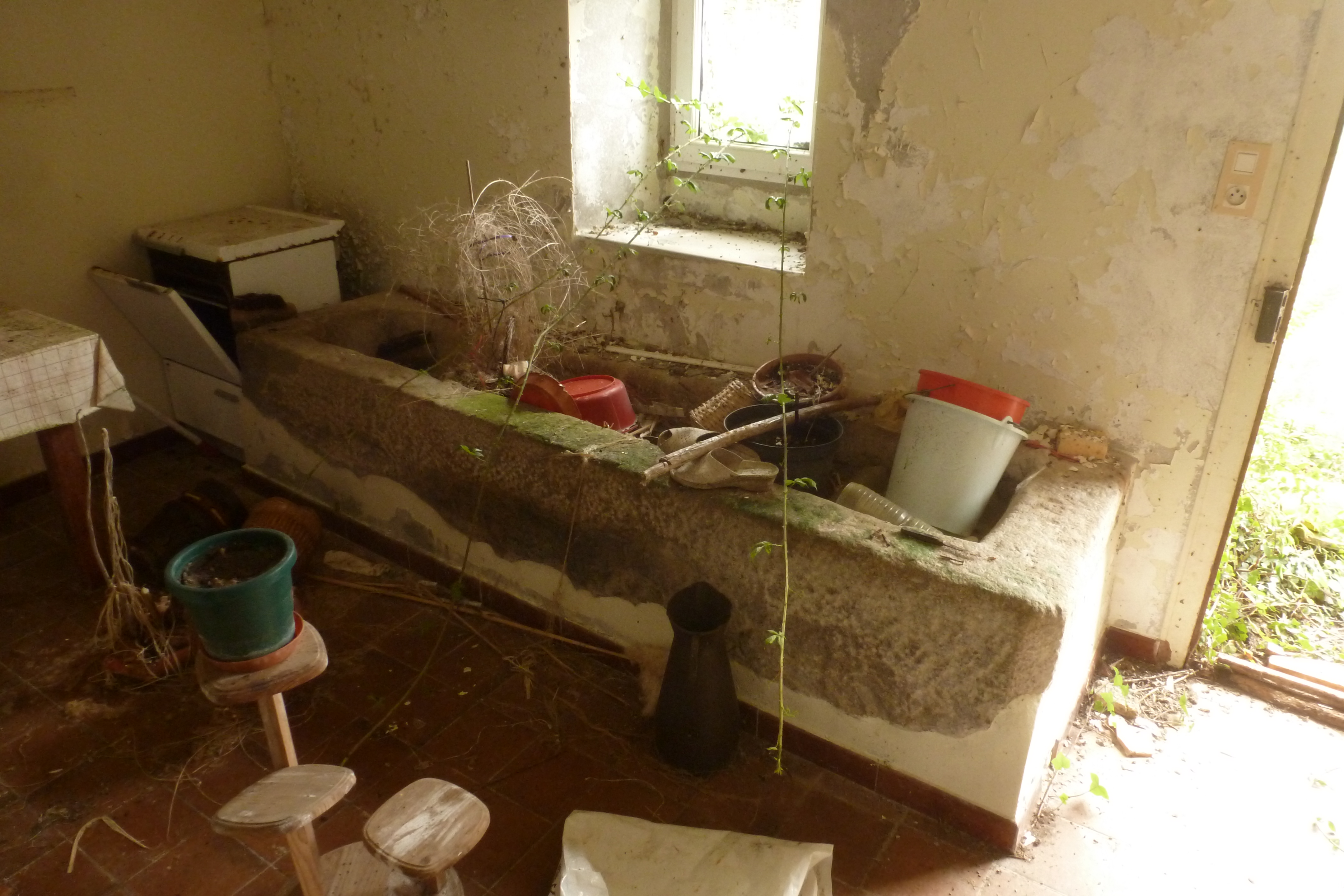 Ecurie, détail de l'auge des chevaux. (2021)Immatriculation