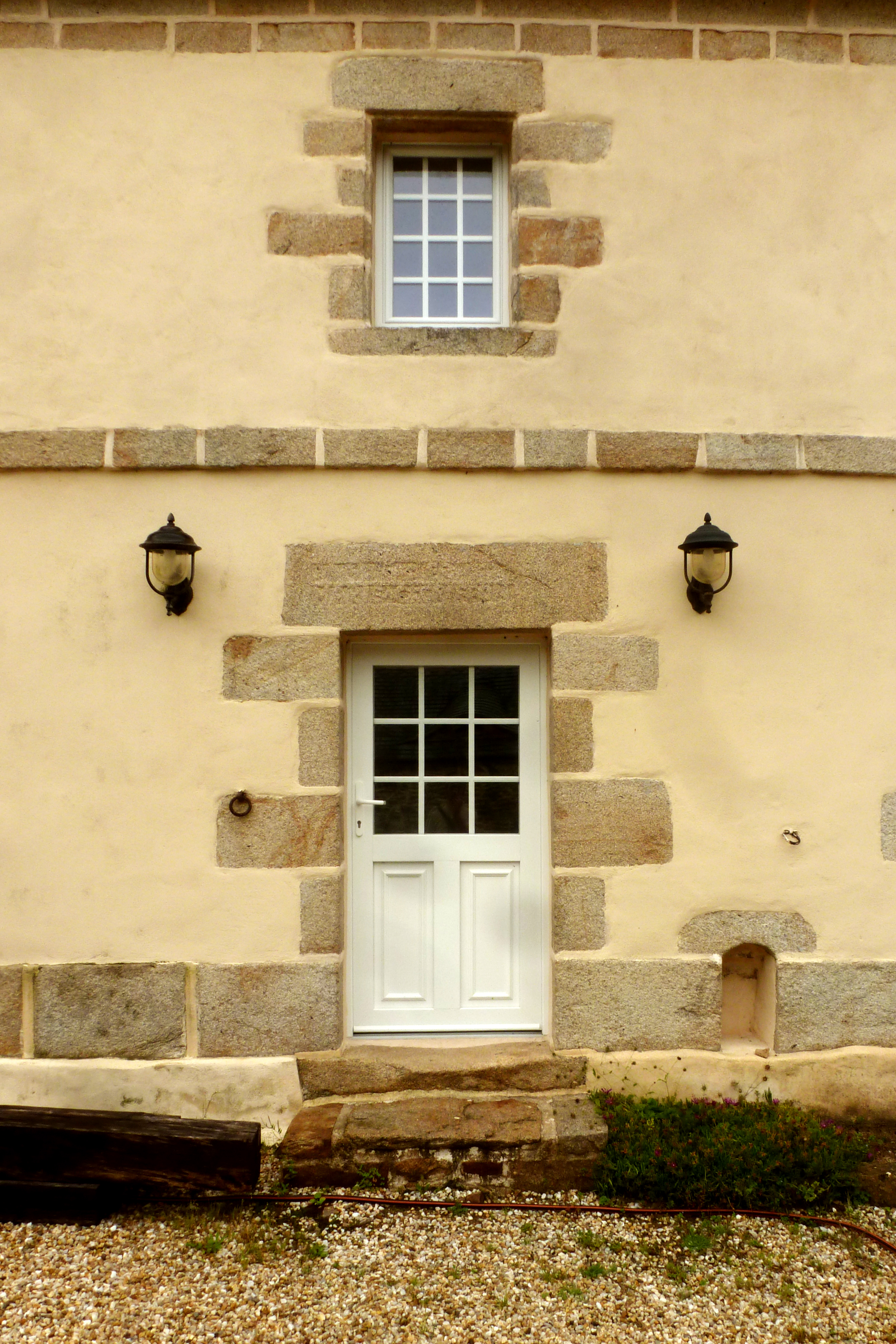 Logis daté 1849, détail de la porte d'entrée avec niche à chien et inscription : : …ER… / MARIE : C : GRIFFON.Immatriculation