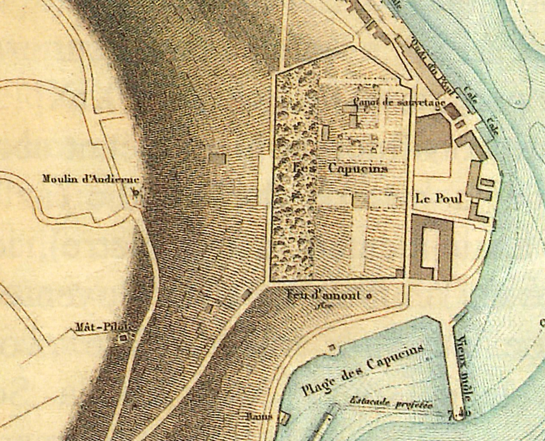 Détail du plan du port d'Audierne, 1879. Emplacement du moulin d'Audierne.Immatriculation