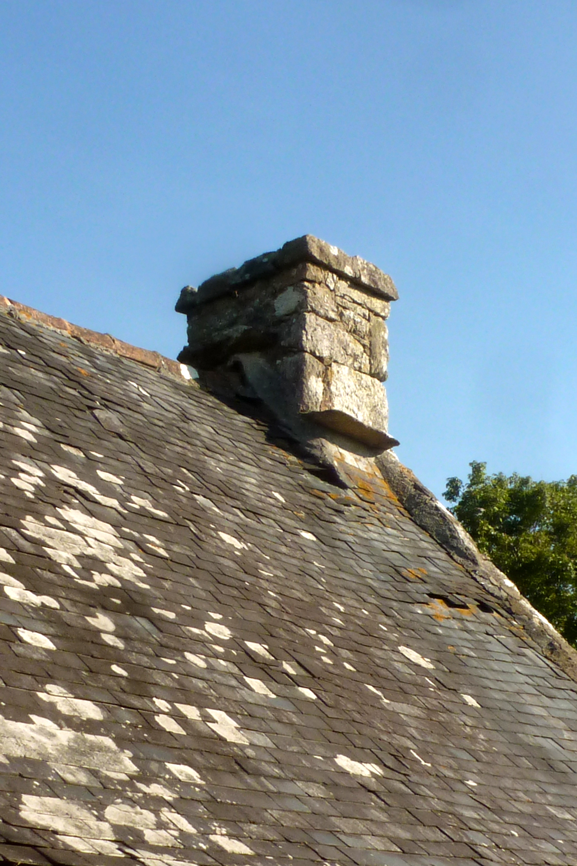 Kervillé, maison à une pièce en rez de chaussée, détail de la souche de cheminée.Immatriculation