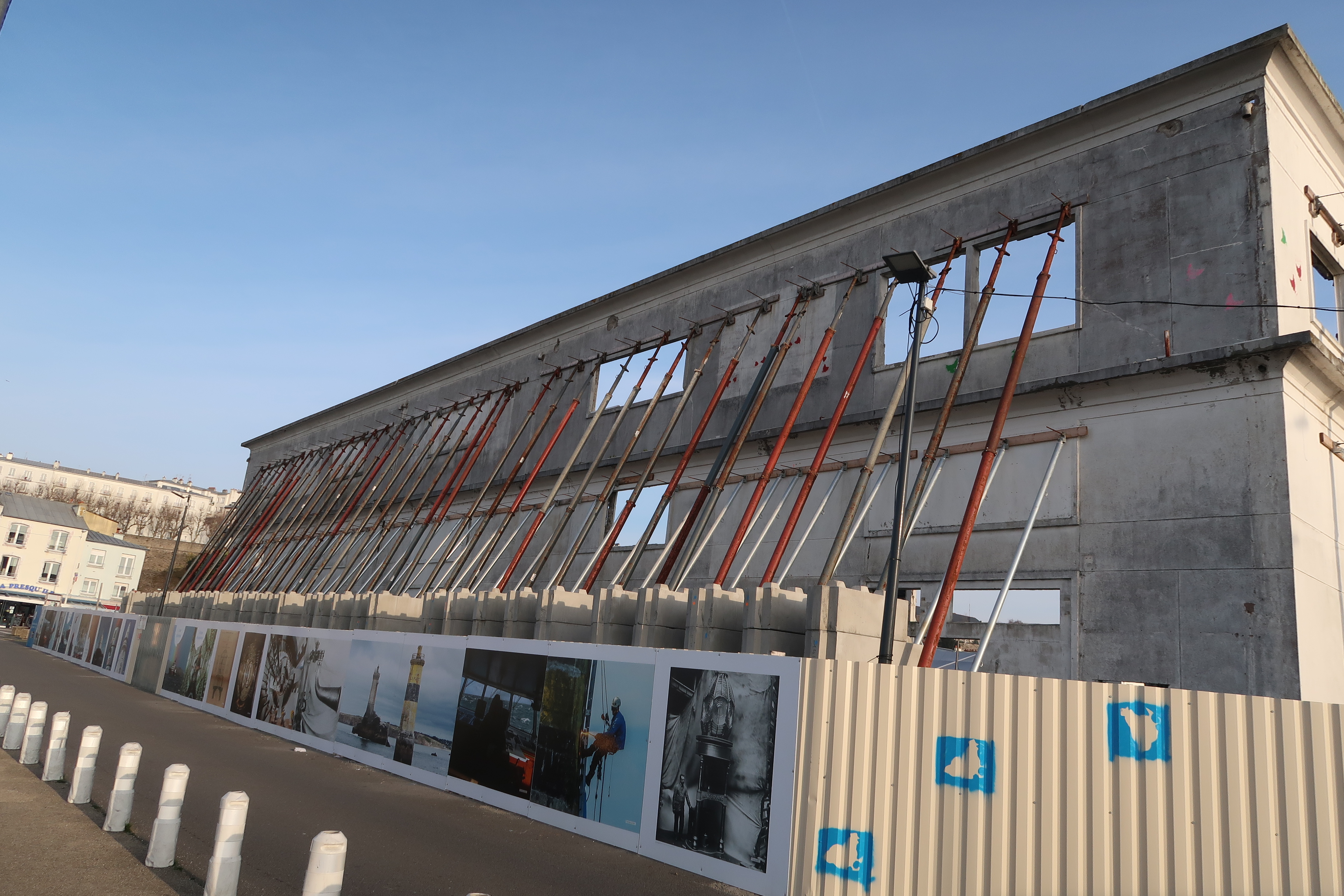 Ancienne criée : travaux pour sa réhabilitation (état décembre 2021) ; panneaux d'interprétation et de médiation valorisant le site et le futur projetImmatriculation