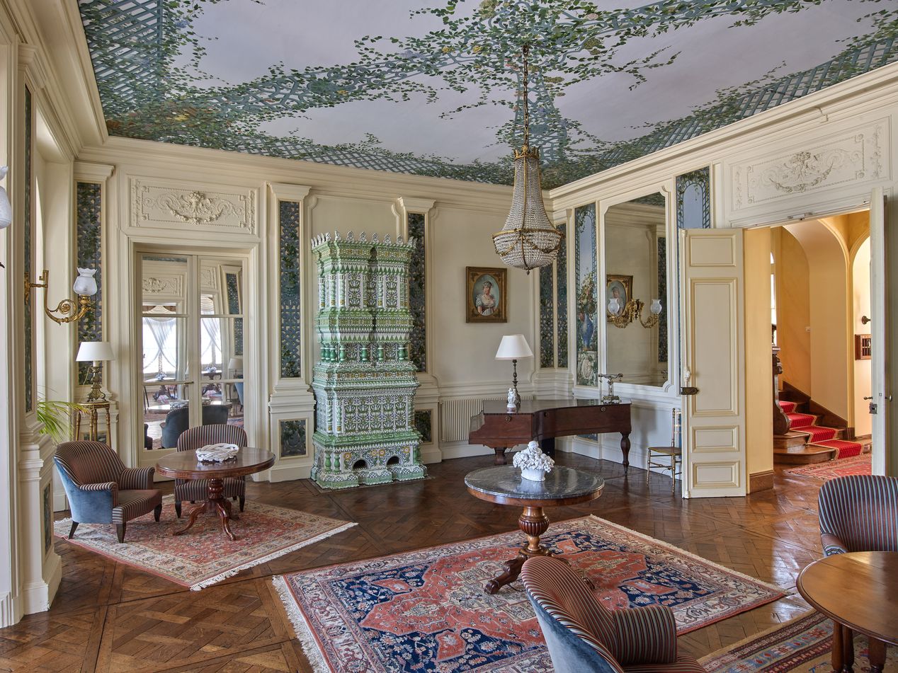 Le grand salon, poële russe et décor de fleurs, vue d'ensembleImmatriculation
