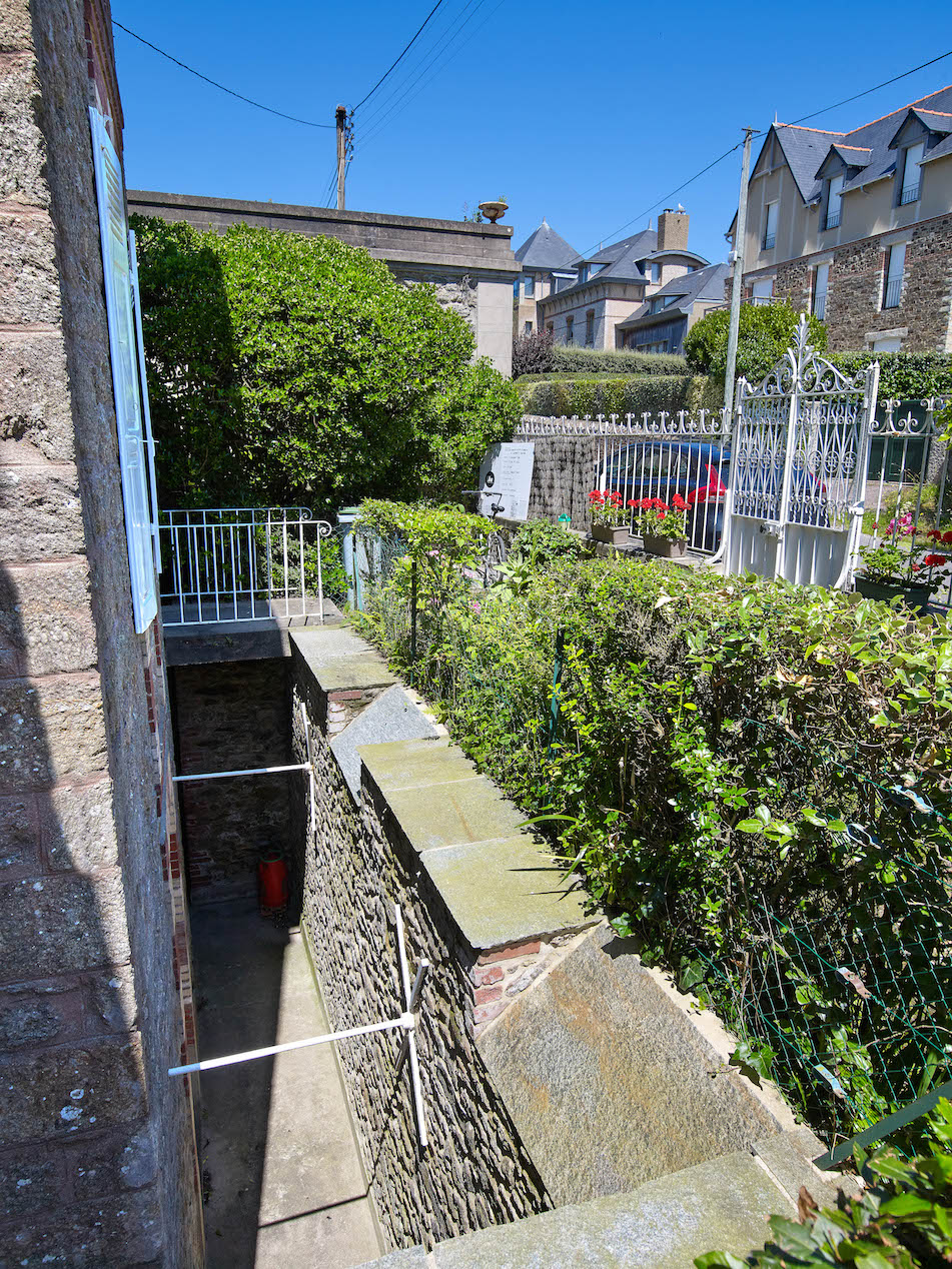 Vue de détail: la cour anglaise et l'accès à l'entréeImmatriculation