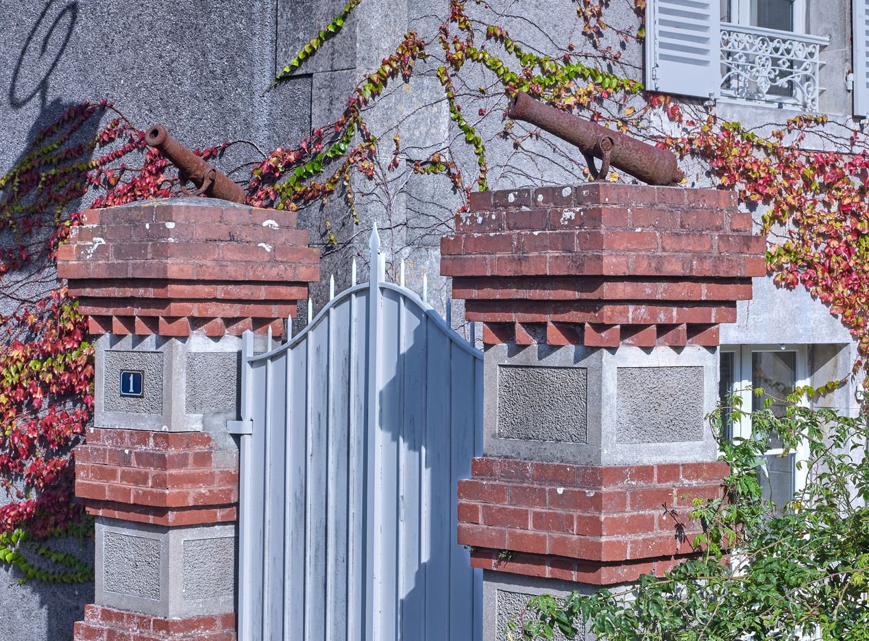 Détail des petits canons de marine disposés sur les piles du portailImmatriculation