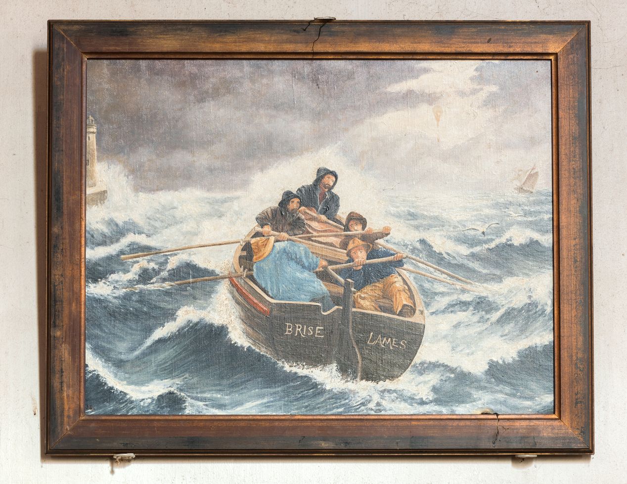 Tableau ex-voto: la barque Brise-lames dans la tempête, copie réalisée en 1996, suite au vol du tableauImmatriculation