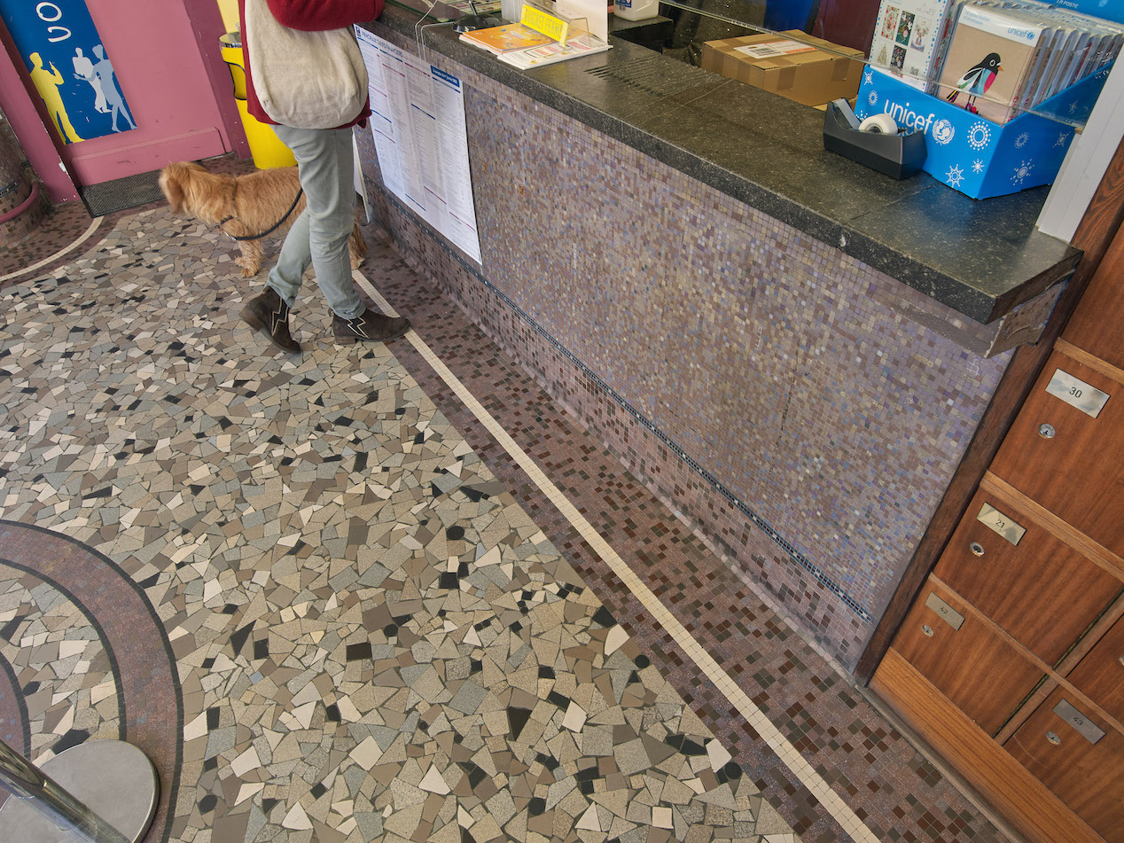 Le guichet, détail du sol en mosaïqueImmatriculation