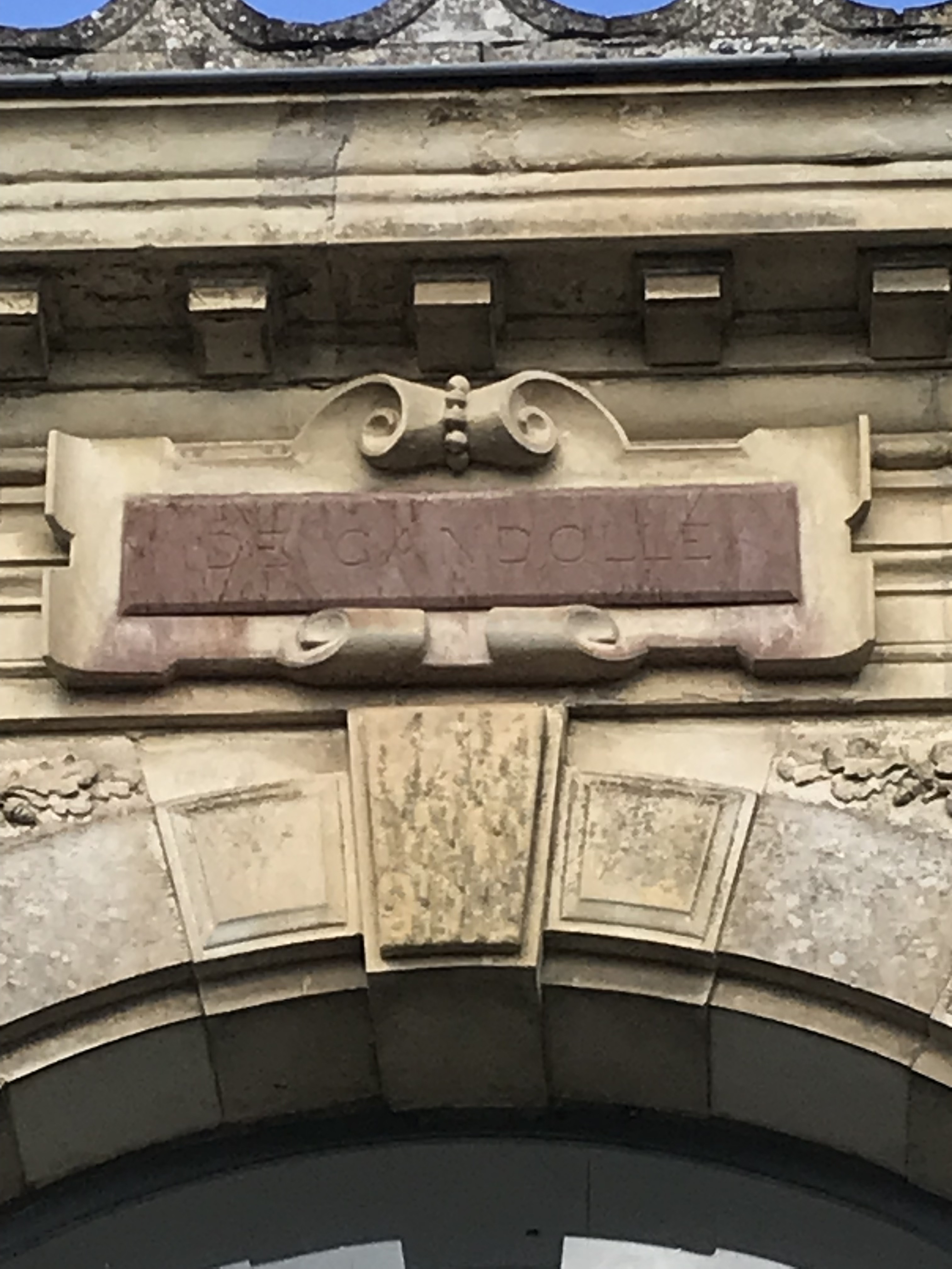 Orangerie ouest, détail du cartouche de CandolleImmatriculation