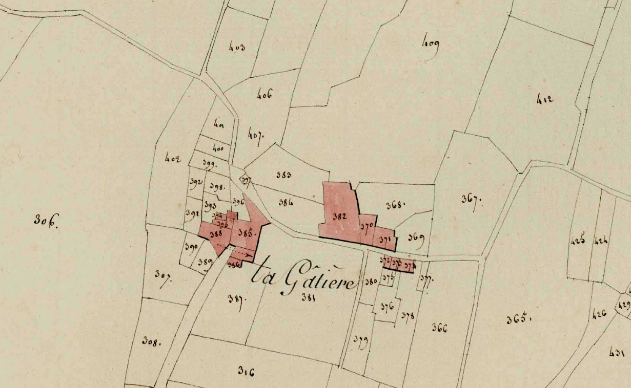 Extrait du cadastre de 1811 : section B, 3ème feuille, parcelle 382Immatriculation