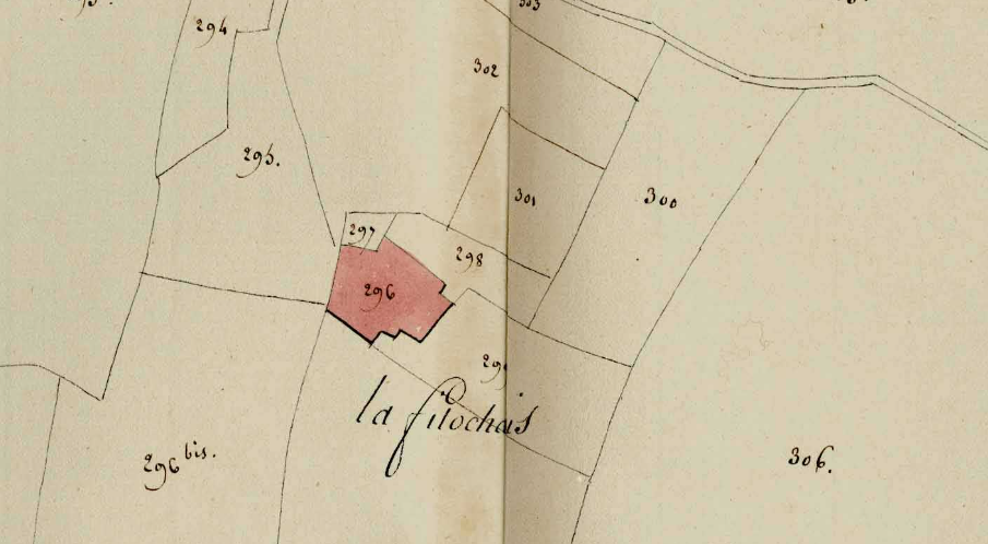 Extrait du cadastre 1811 : section B, 3ème feuille, parcelle 296Immatriculation