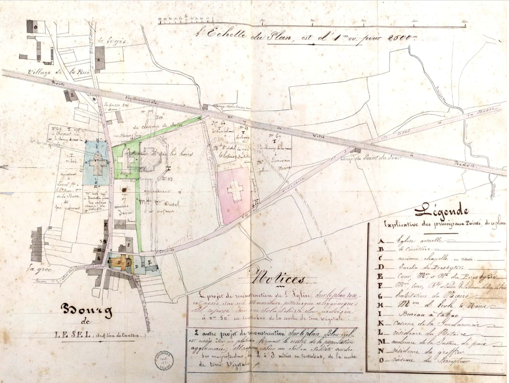 Plan issu de l'enquête publique concernant la localisation de l'église paroissiale Saint-Marin, 1863Immatriculation