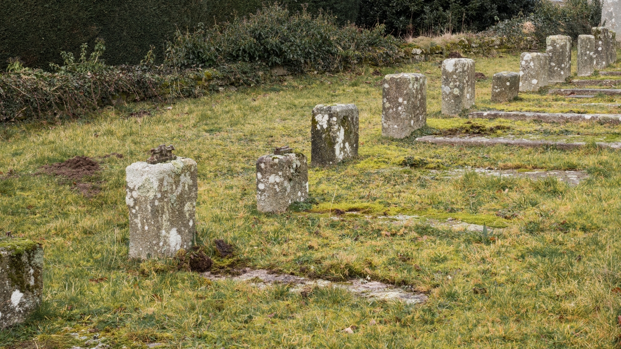 Vue des dalles funéraires du cimetièreImmatriculation