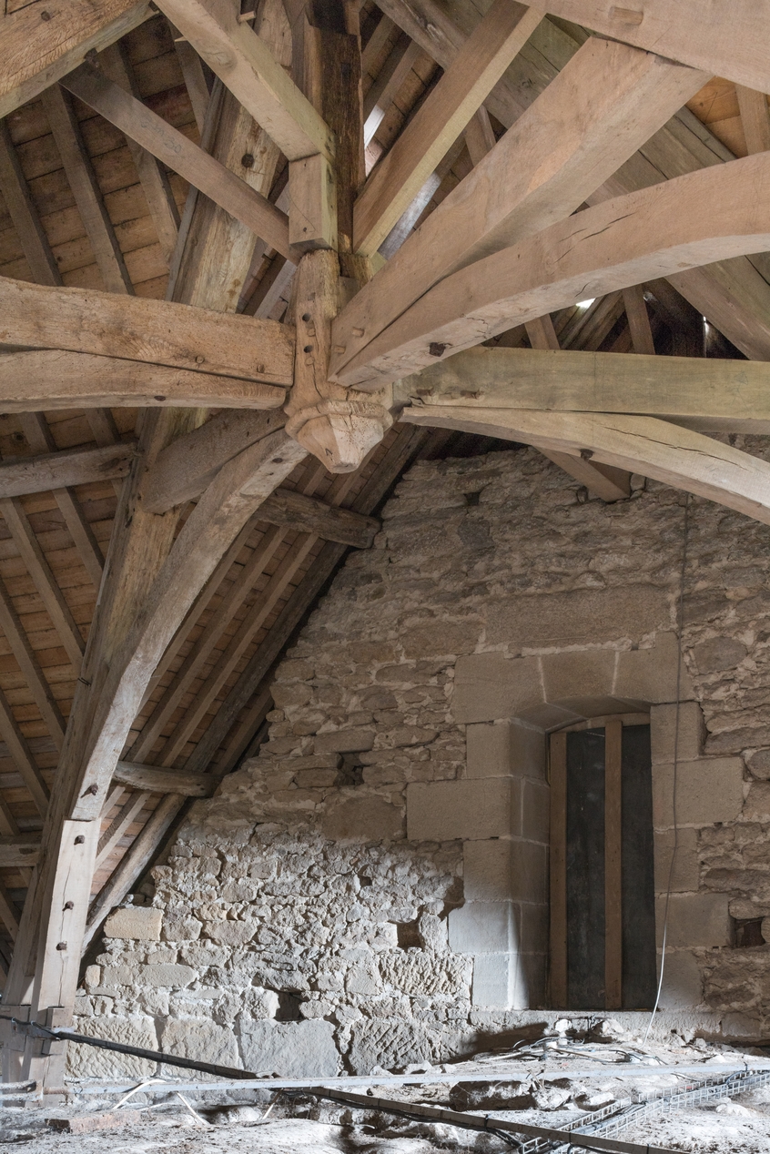 Vue oblique de la charpente à la croisée du transept.Immatriculation