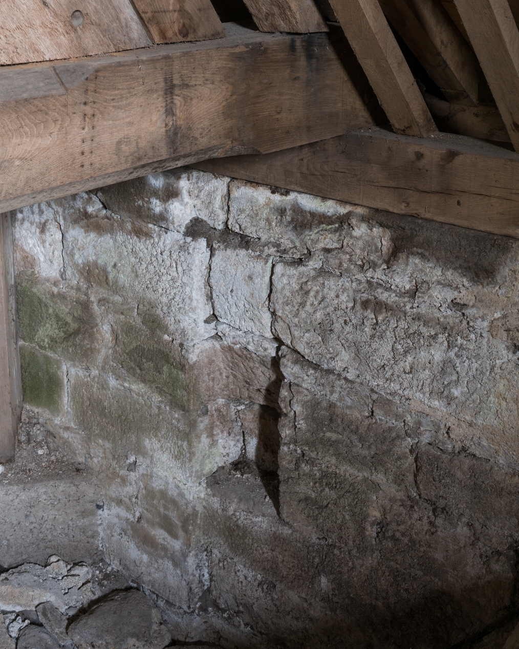 Vue de détail : vestige d'empochement en partie haute du mur ouest du croisillon nord.Immatriculation