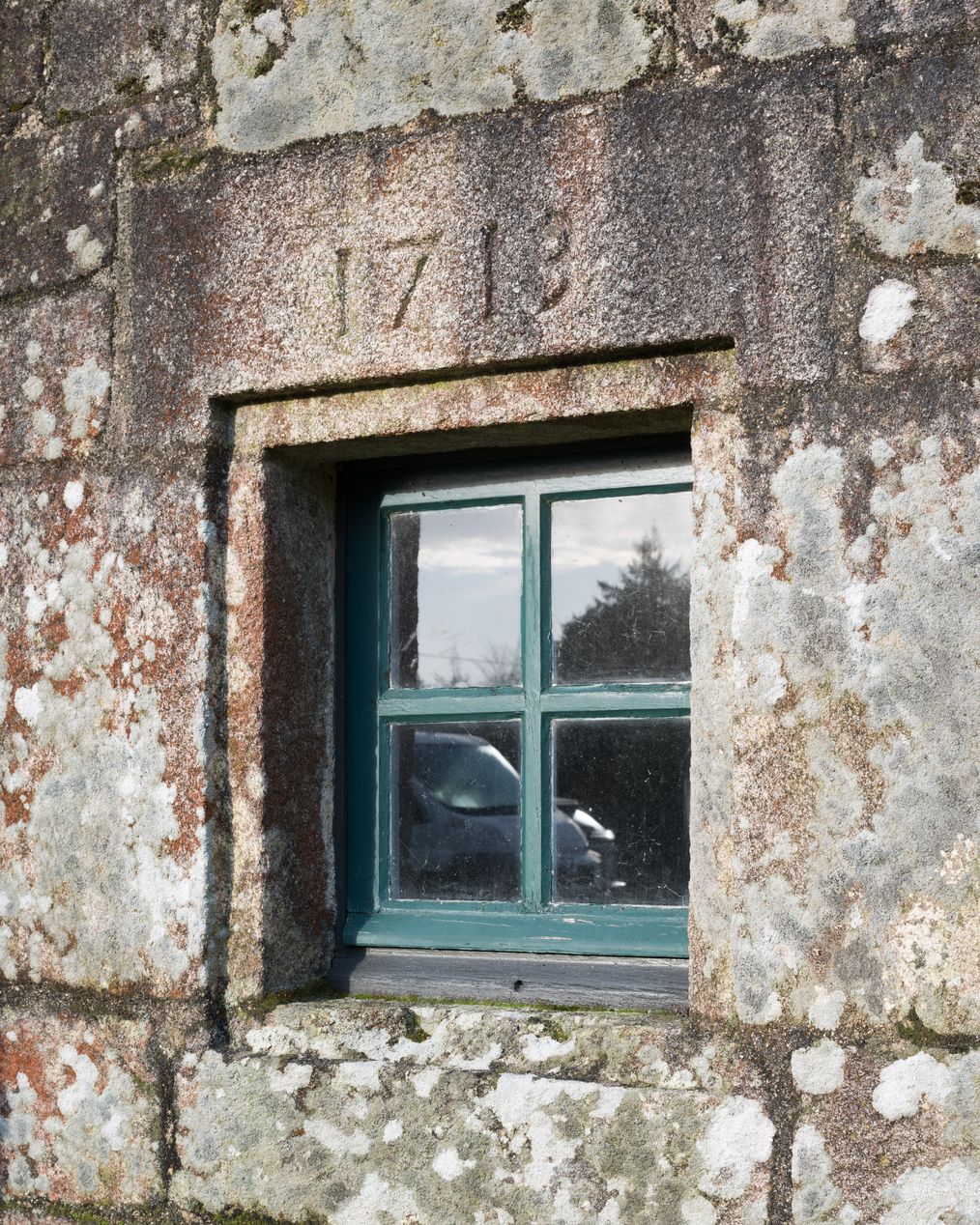 Vue de détail : fenêtre de la façade est de la sacristie.Immatriculation