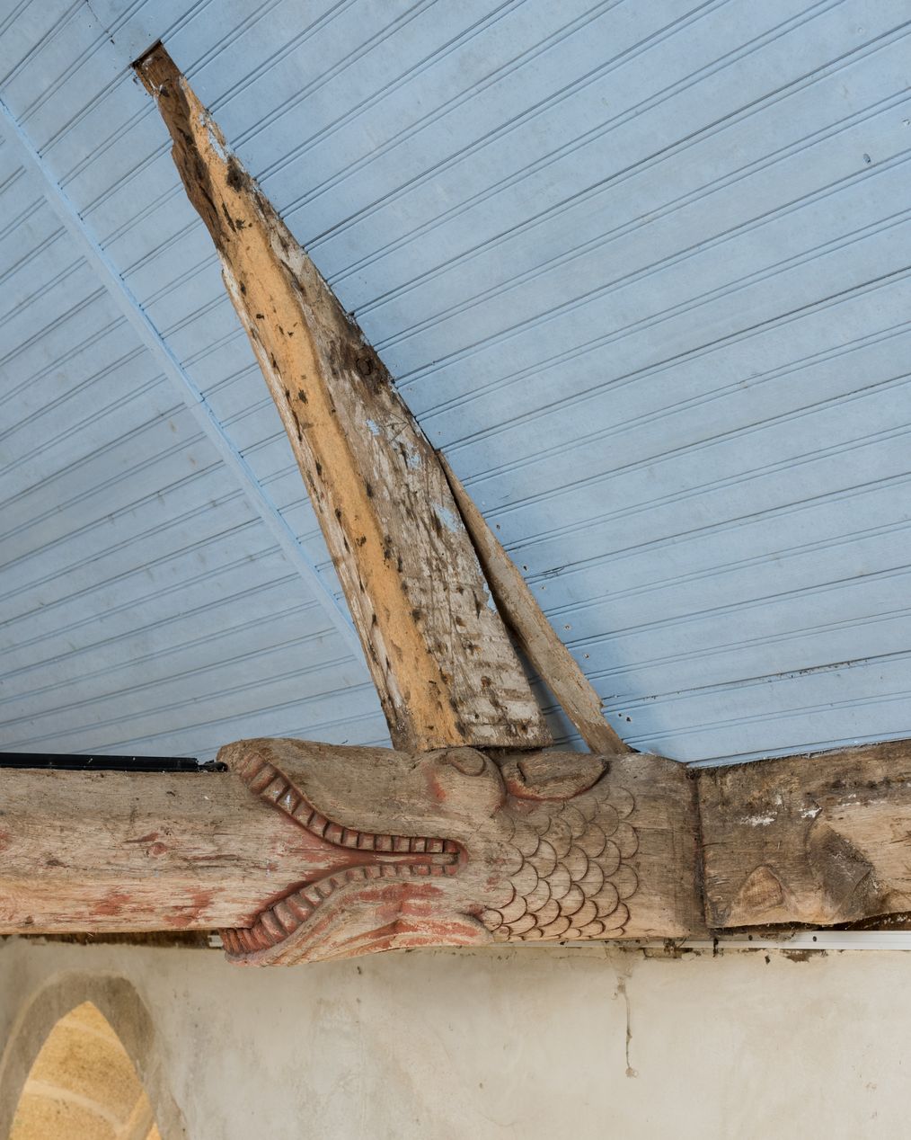 Vue de détail : engoulant d'un entrait (mur sud)Immatriculation