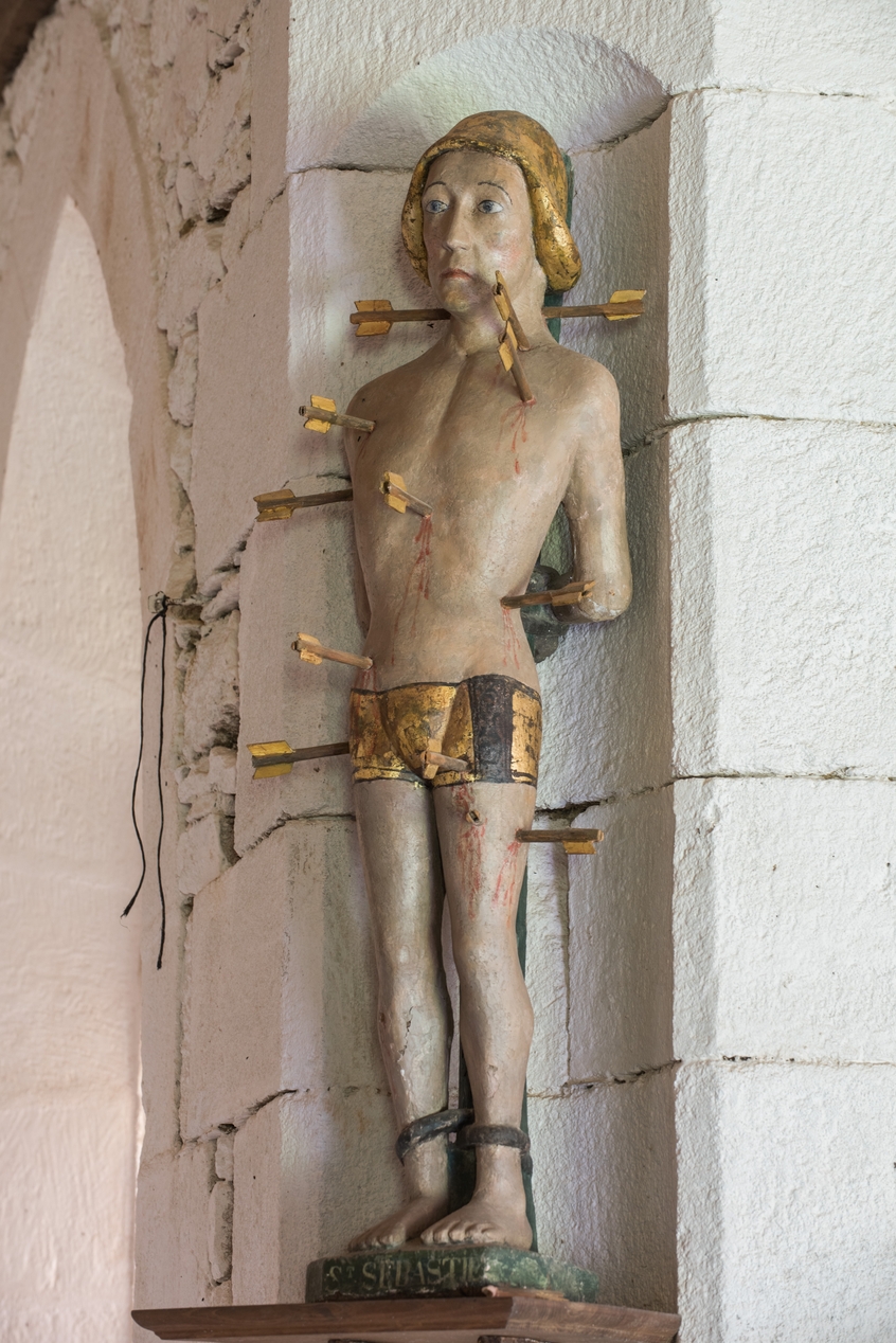 Statue de saint Sébastien à l'angle du choeur et du croisillon sudImmatriculation
