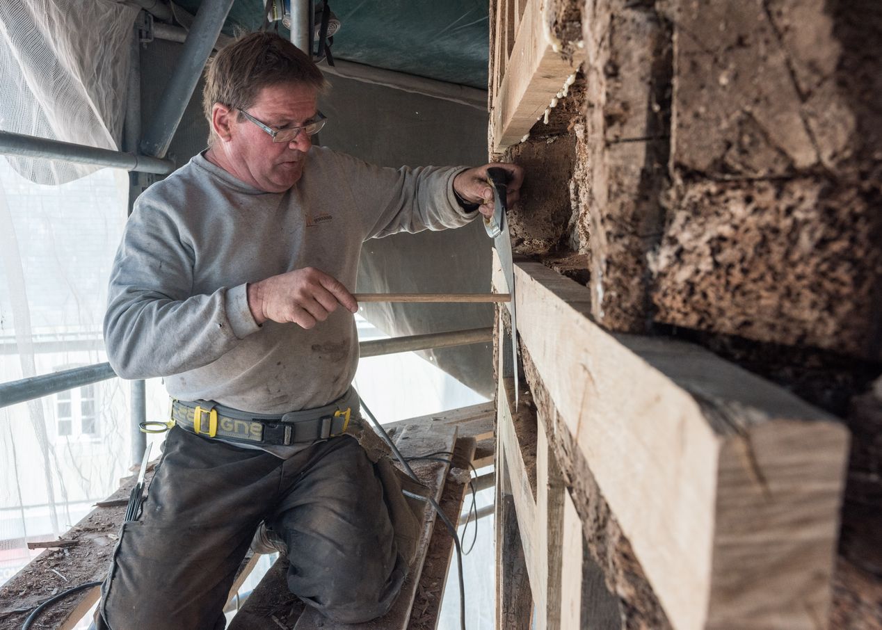 Deuxième étage, découpe à la scie de la nouvelle cheville.Immatriculation