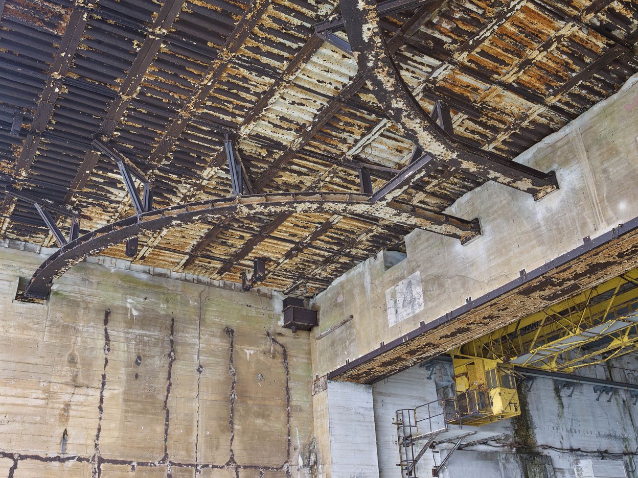 Vue de l'entrée de l'alvéole G (n° 13 et 14) : supports de fixation de la porte hauteImmatriculation