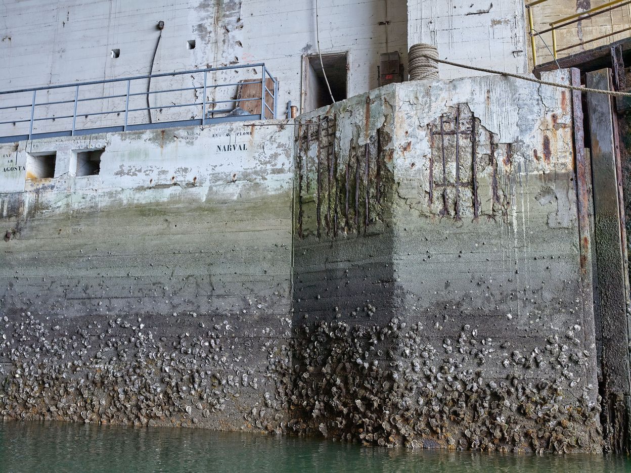 Vue de l'alvéole G (n° 13 et 14) : peintures murales françaises, repères d'amarrage pour les sous-marins de classe "AGOSTA" et "NARVAL"Immatriculation