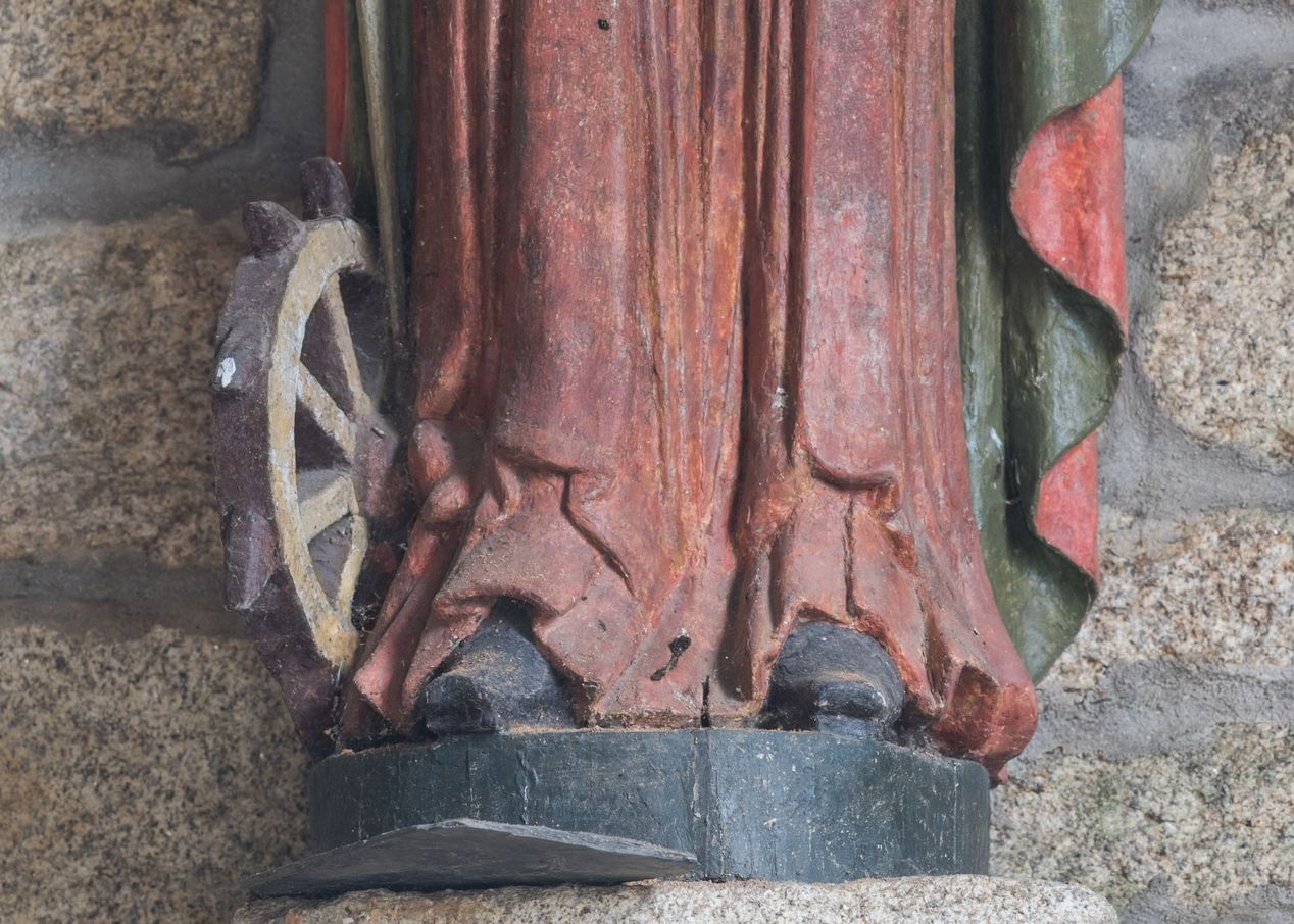 Statue (d'applique, petite nature) : sainte Catherine d'Alexandrie, chapelle Sainte-Catherine (Meslan),