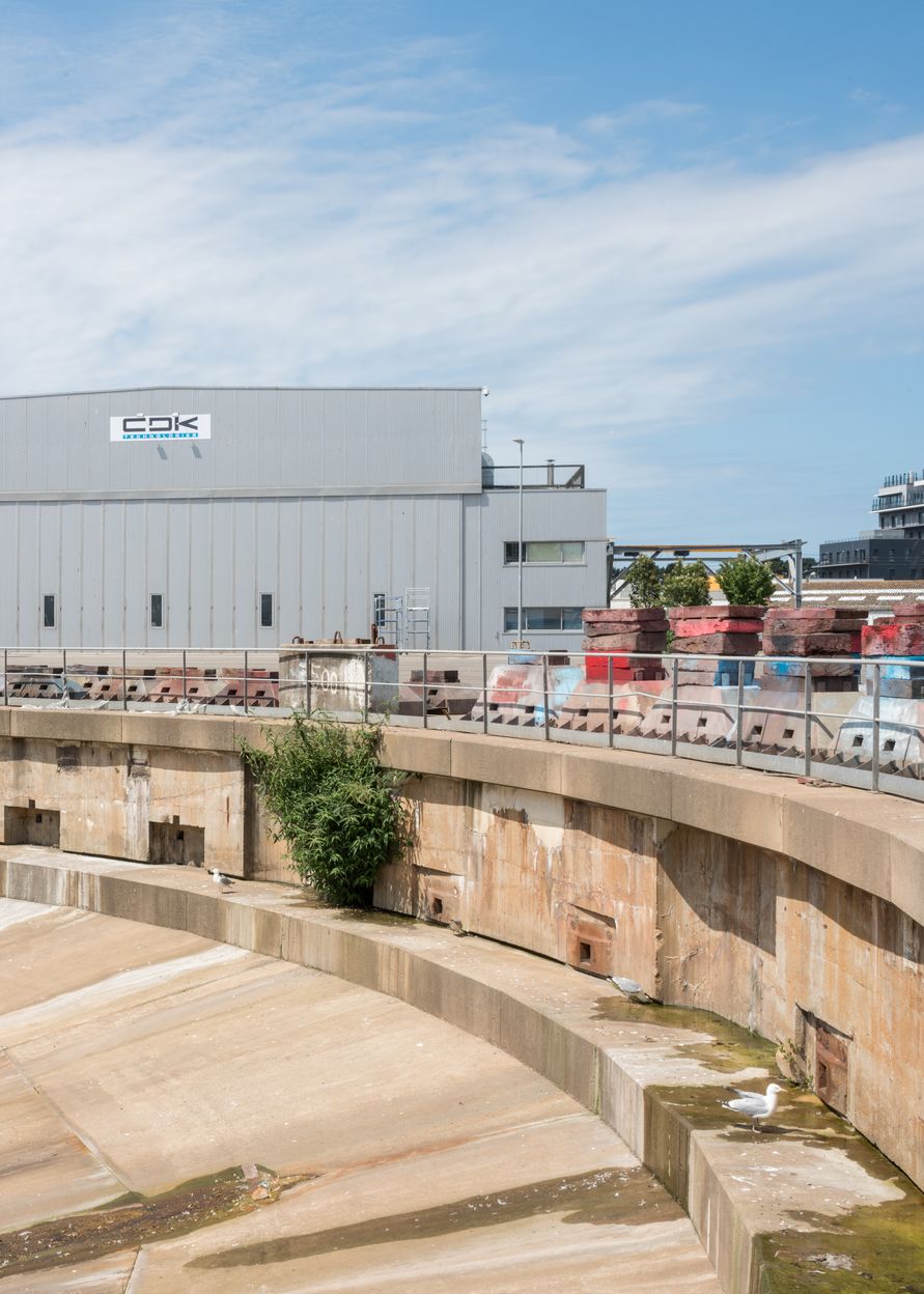 Slipway et cales de construction et de réparation navale, actuellement bassin de décantation, aire de réparation navale (Lorient),