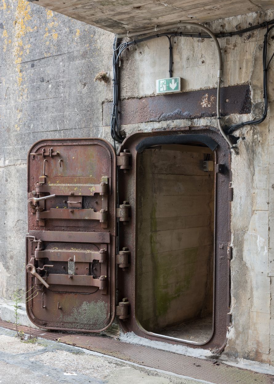 Vue de la porte blindée à deux vantaux donnant accès à la dalle de couvertureImmatriculation