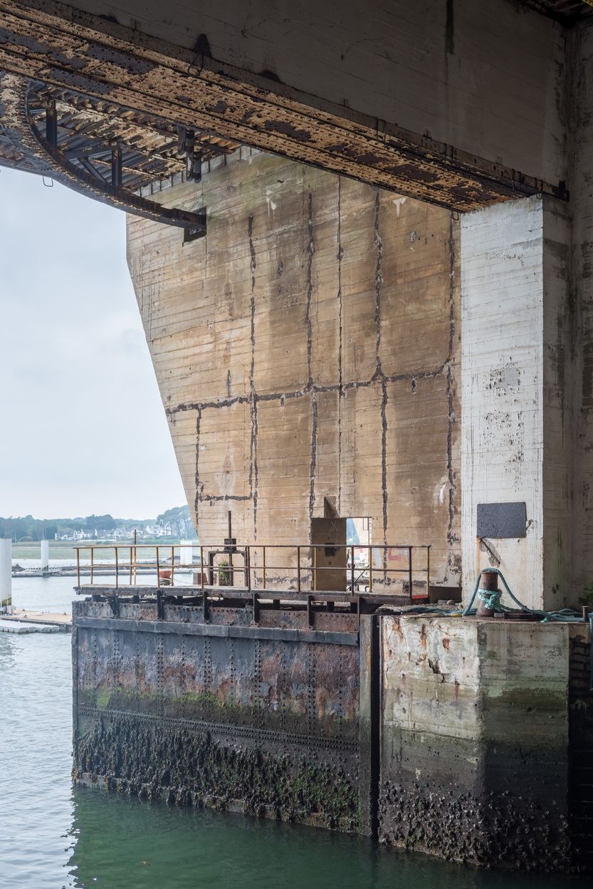 Vue de l'entrée de l'alvéole G (n° 13 et 14) : porte ouest et supports de fixation de la porte hauteImmatriculation