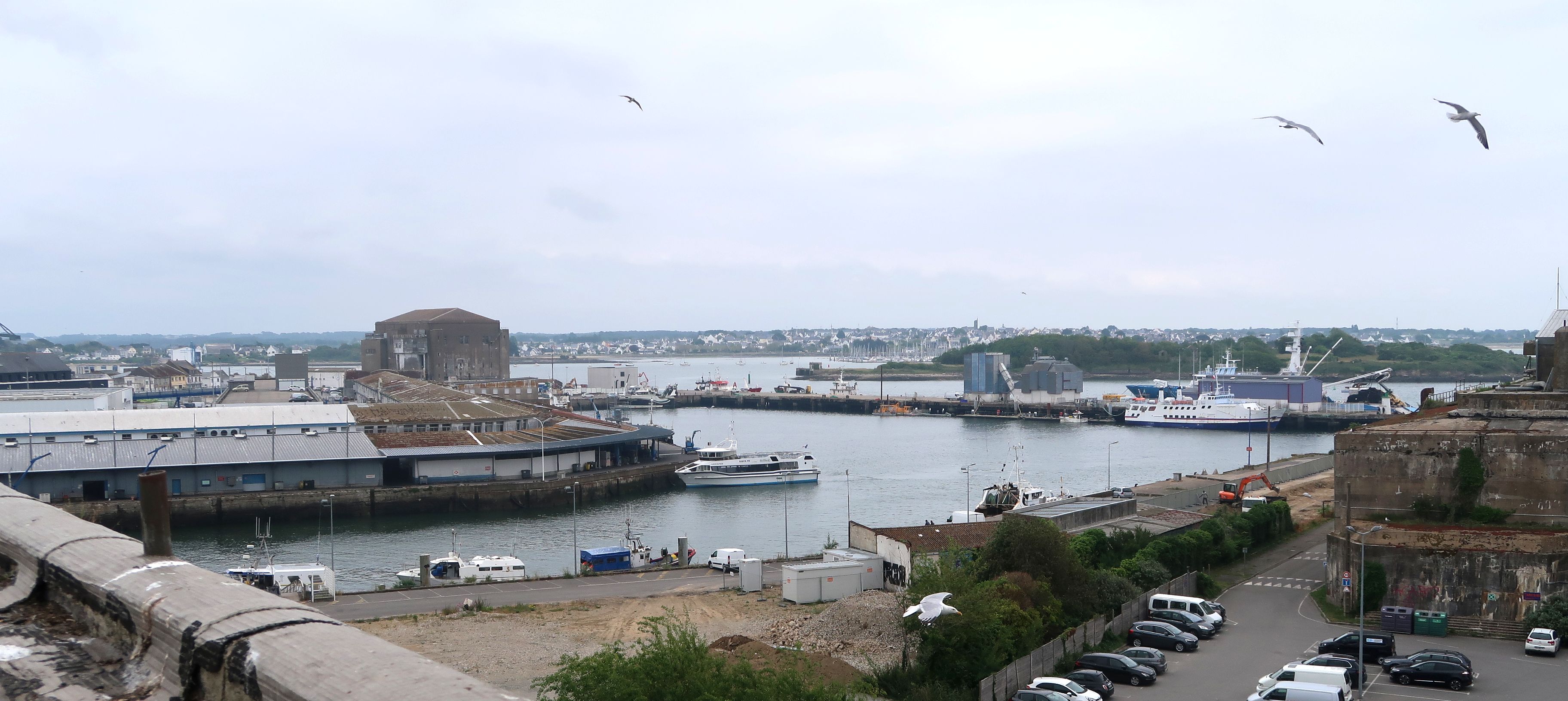 Ancien frigorifique de Keroman dans son environnement portuaire, depuis le KIImmatriculation