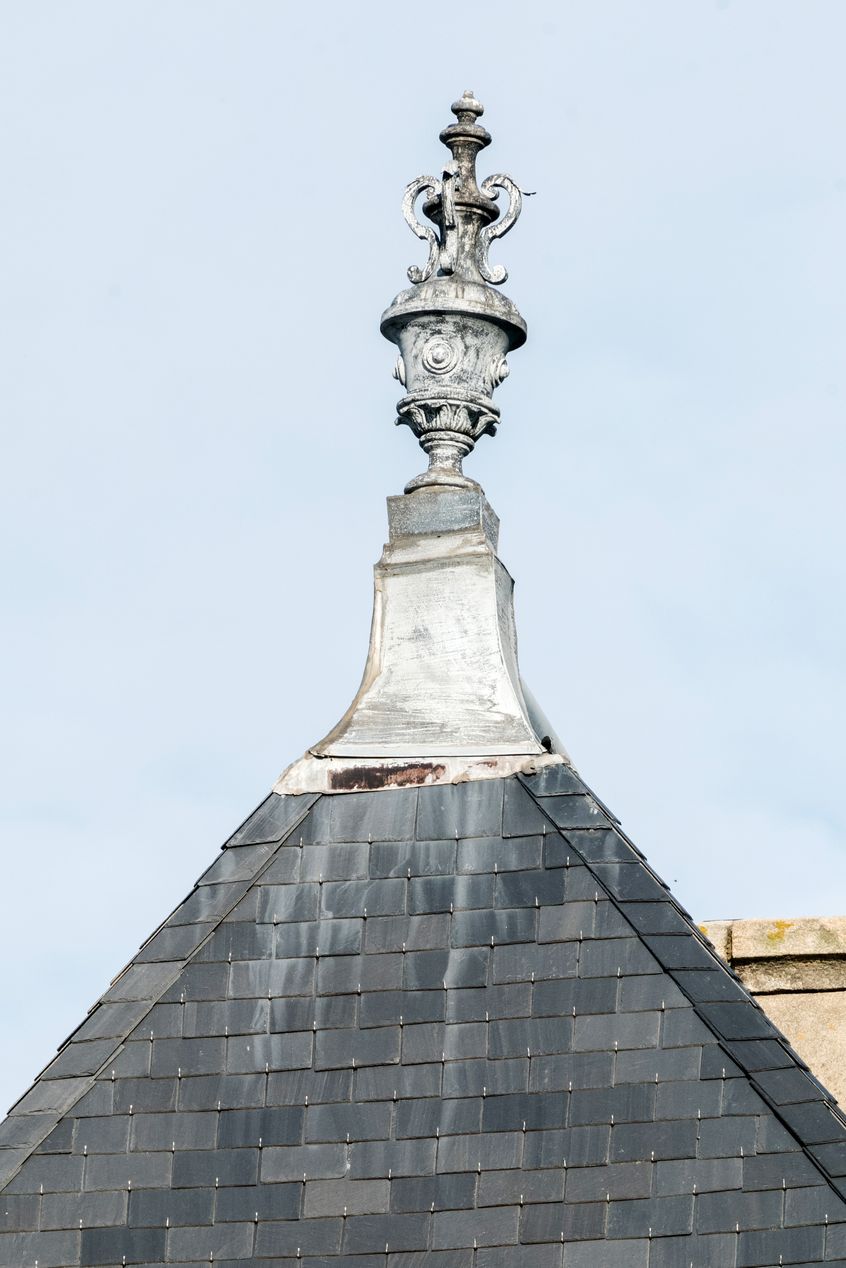 Détail d'un épi de faîtage sur le pavillon estImmatriculation