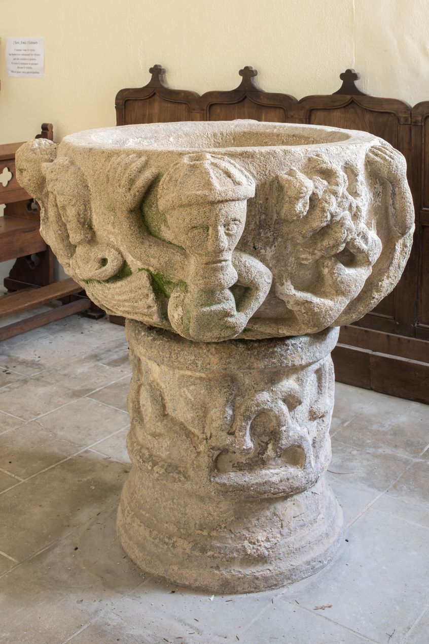 Fonts baptismaux, détail d'un atlante et d'une scène animalièreImmatriculation