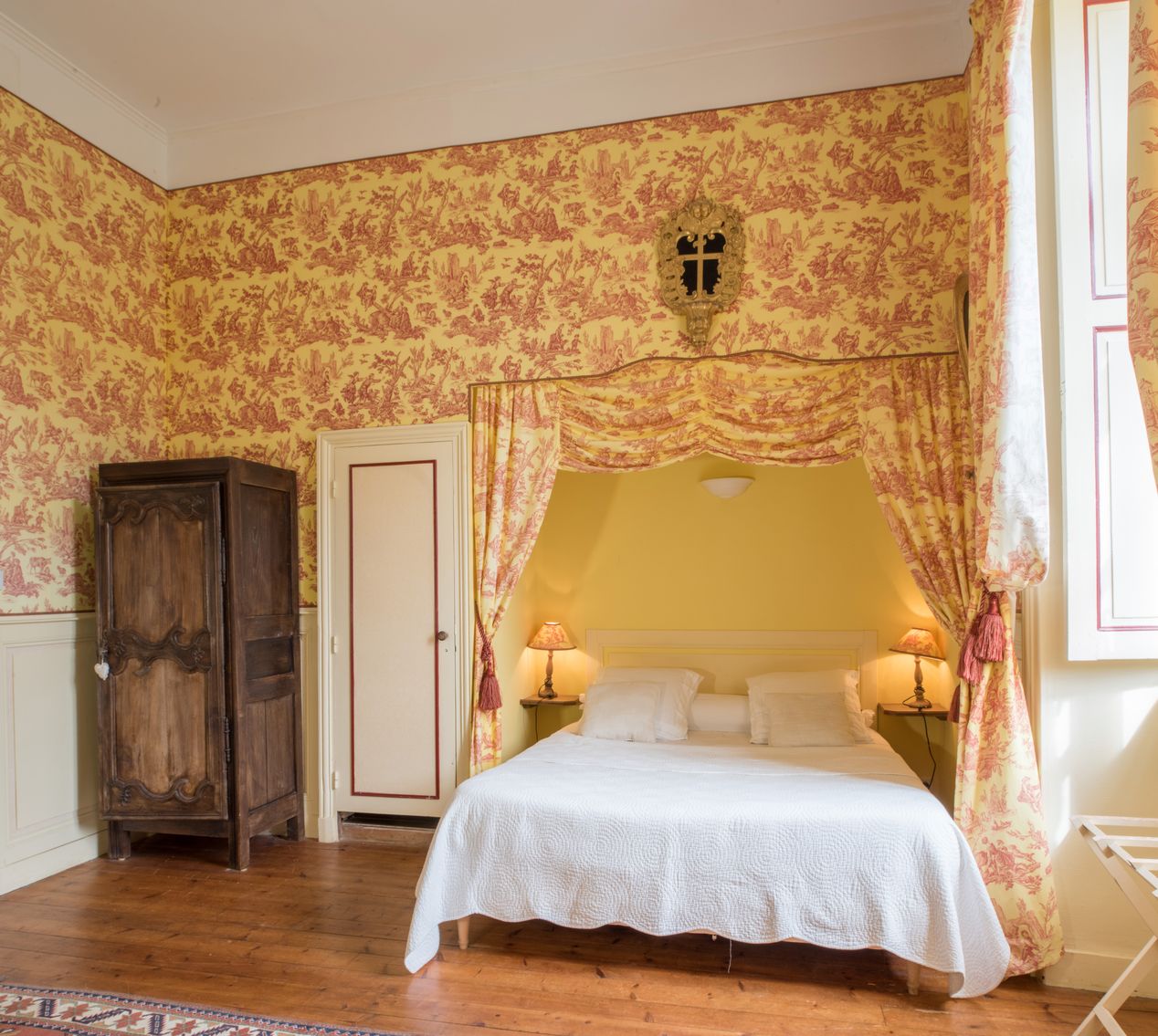 Vue intérieure, chambre à coucher avec lit en alcôveImmatriculation