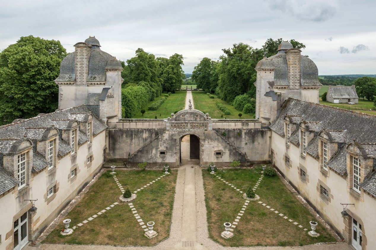 Perspective depuis le château vers la cour et le corps de passage, état en 2022Immatriculation