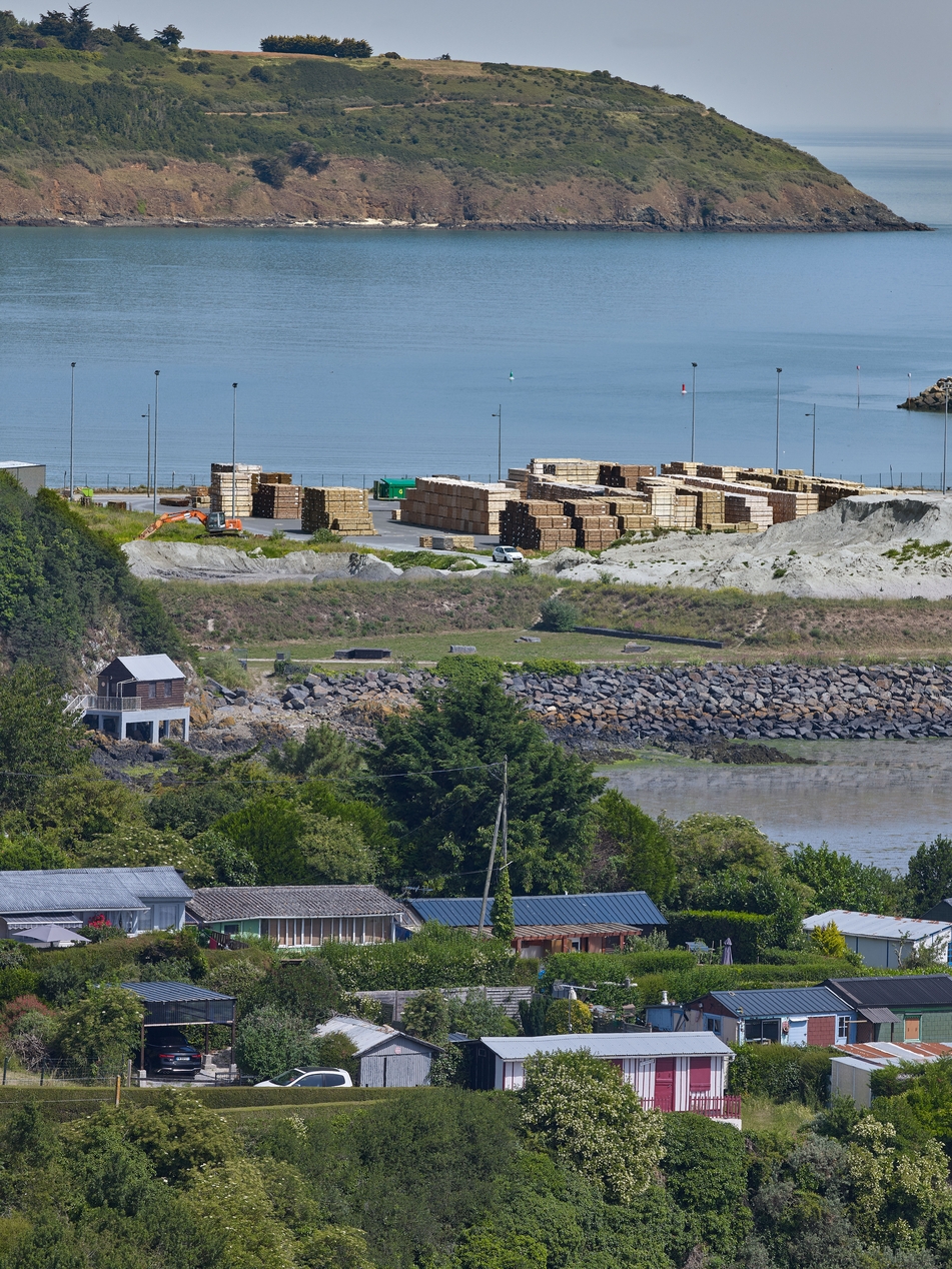 Vue générale des cabanons du Valais. Au second plan, le quai des Kaguerlins.Immatriculation