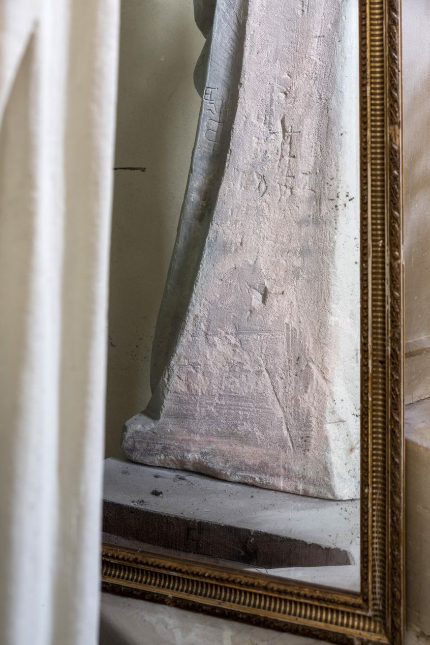 Vue du revers, avec inscriptions anciennes : possibles marques de marchandImmatriculation