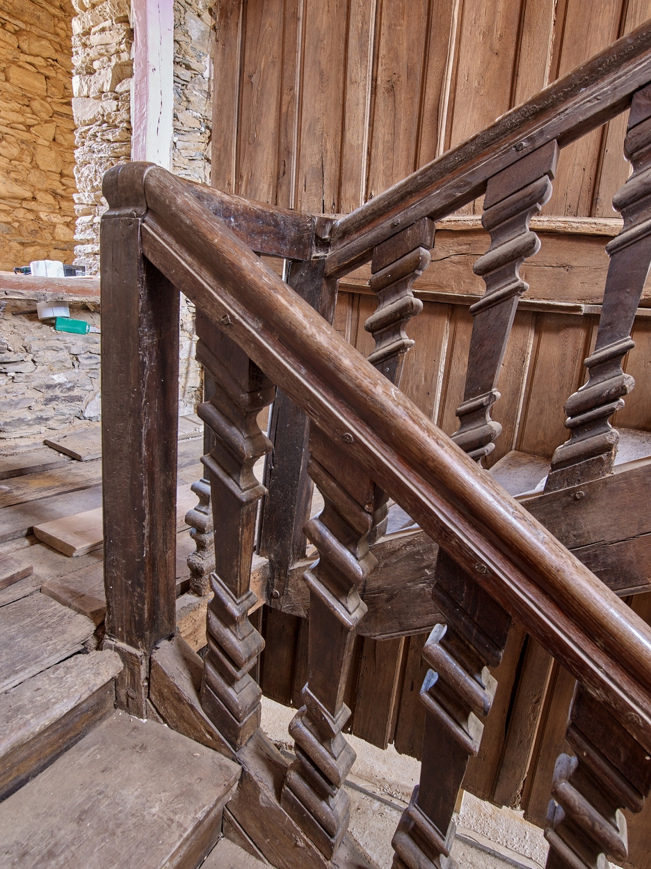 L'Abbaye. Maison de marchand de toile, 1ère moitié du 18e siècle. Escalier à retours en boisImmatriculation