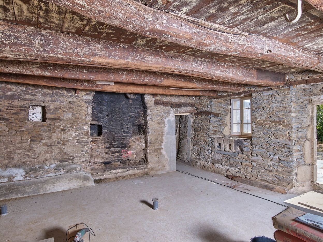 Maison. Partie centrale correspondant à la cuisine. Vue générale intérieureImmatriculation