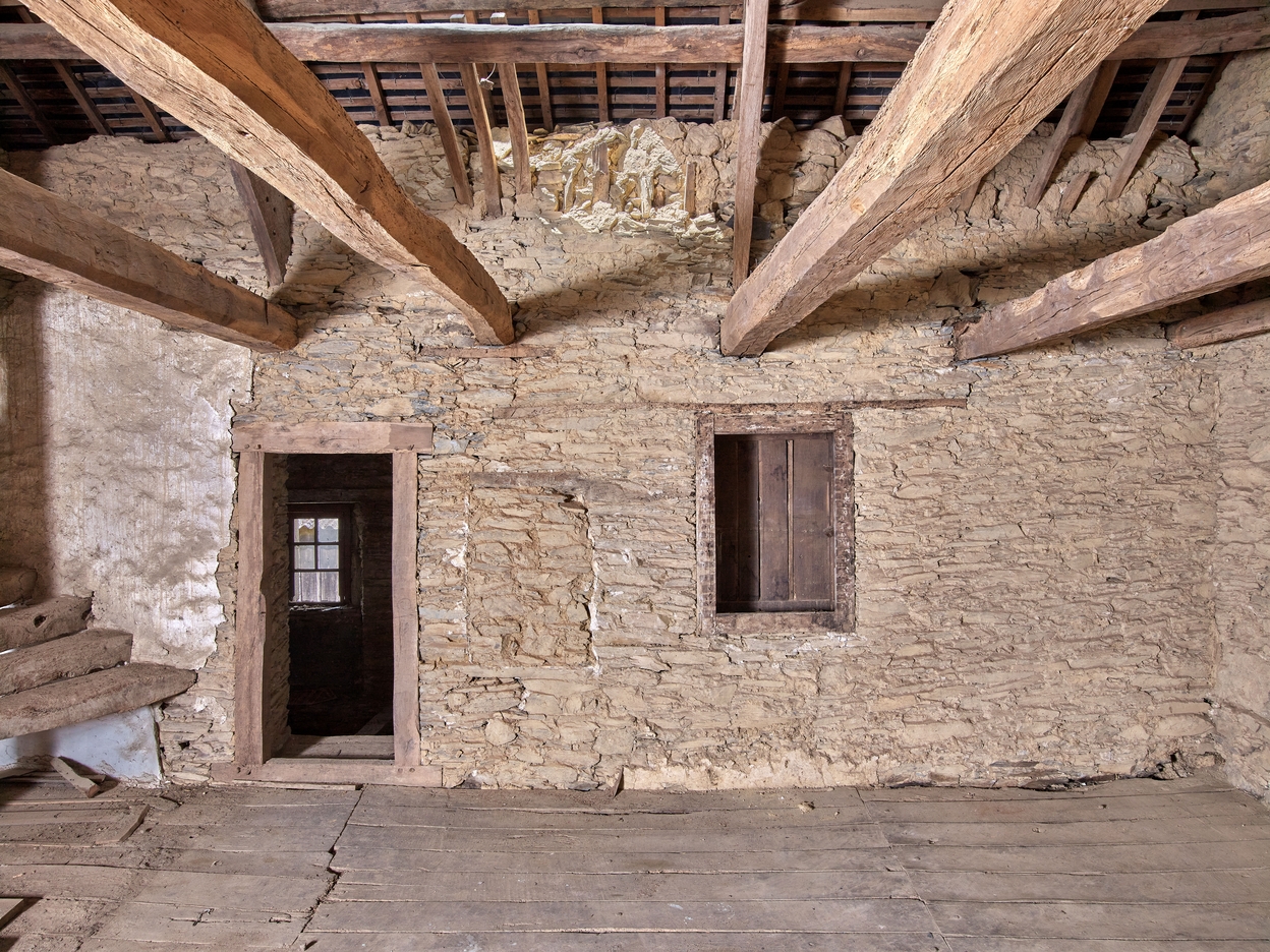 Maison. Chambre au-dessus de la cuisine. Mur de séparation avec la chambre de l'appentis nordImmatriculation