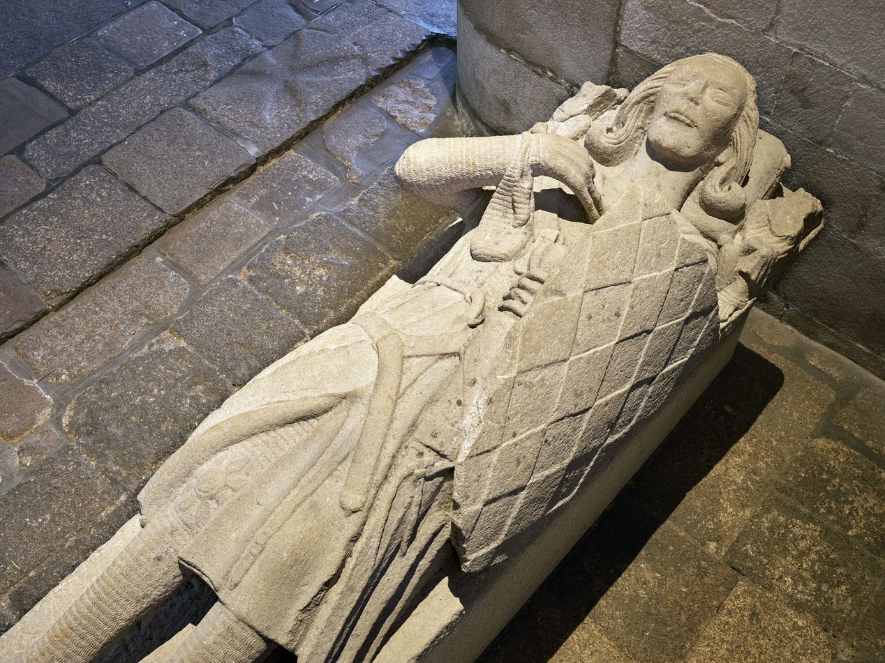 Gisant de Rolland de Dinan, vue en plongée du busteImmatriculation