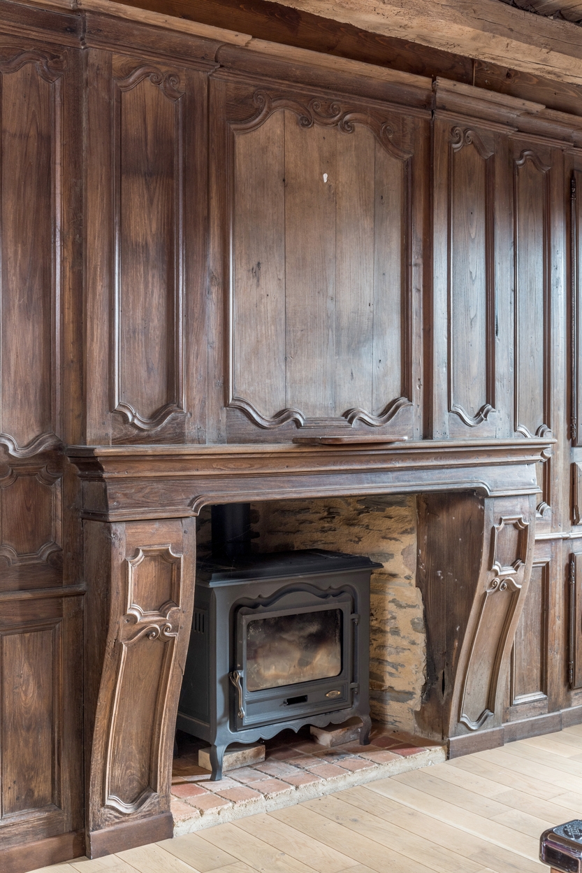 Salon. Cheminée boisée à tabletteImmatriculation