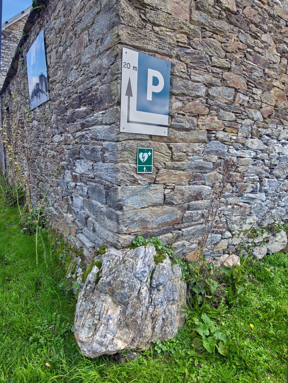 Rue Maison des Toiles. Bloc de quartz en base de maçonnerieImmatriculation