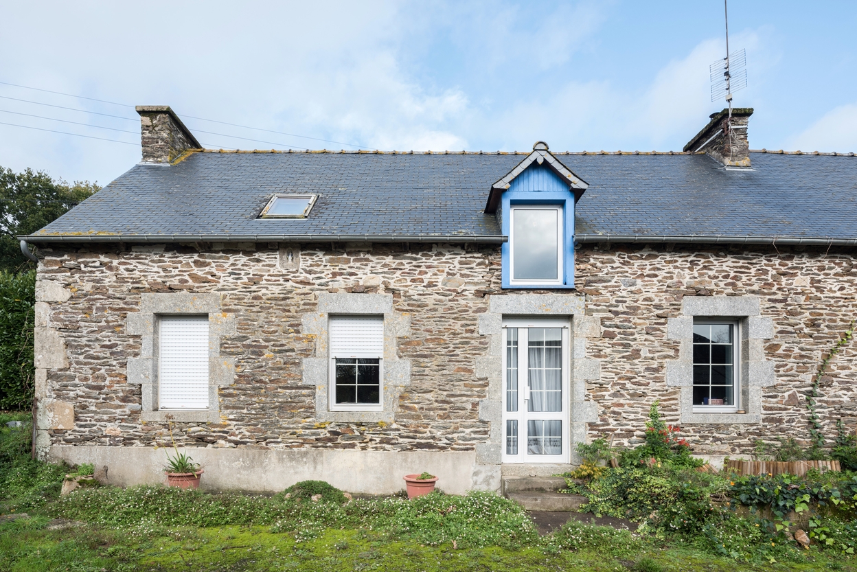Ensemble textile : blanchisserie, logis sur porche et maison de marchand de toile, Le Gouézo (Saint-Thélo),
