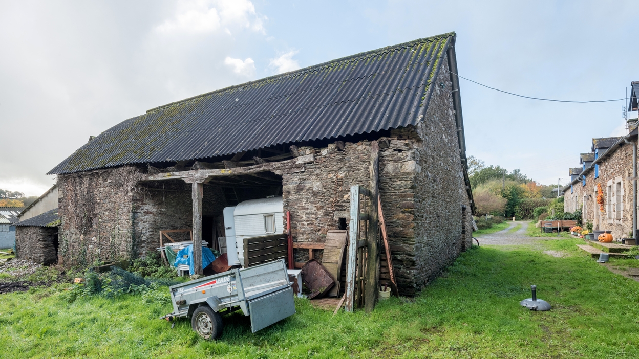 Ensemble textile : blanchisserie, logis sur porche et maison de marchand de toile, Le Gouézo (Saint-Thélo),