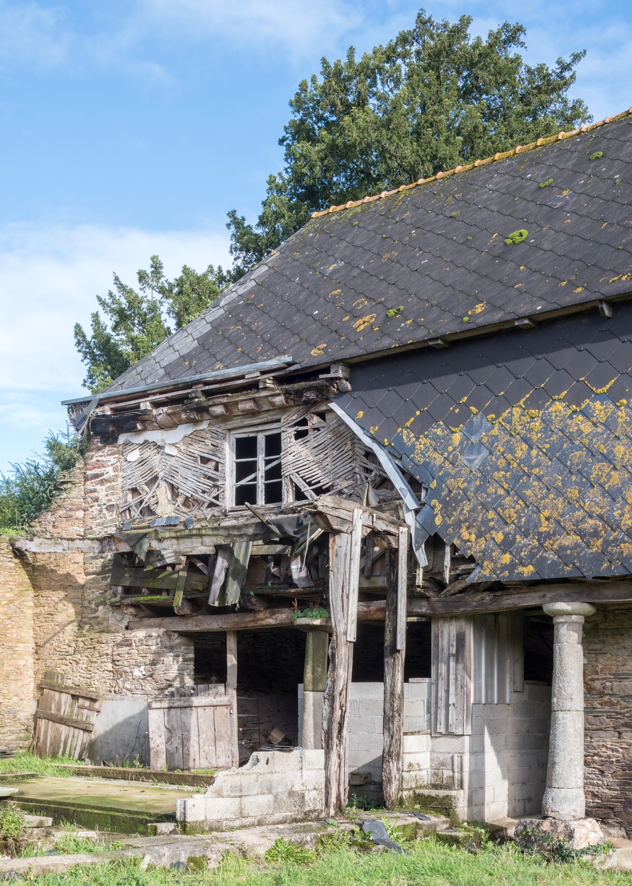 Ensemble textile : blanchisserie, logis sur porche et maison de marchand de toile, Le Gouézo (Saint-Thélo),