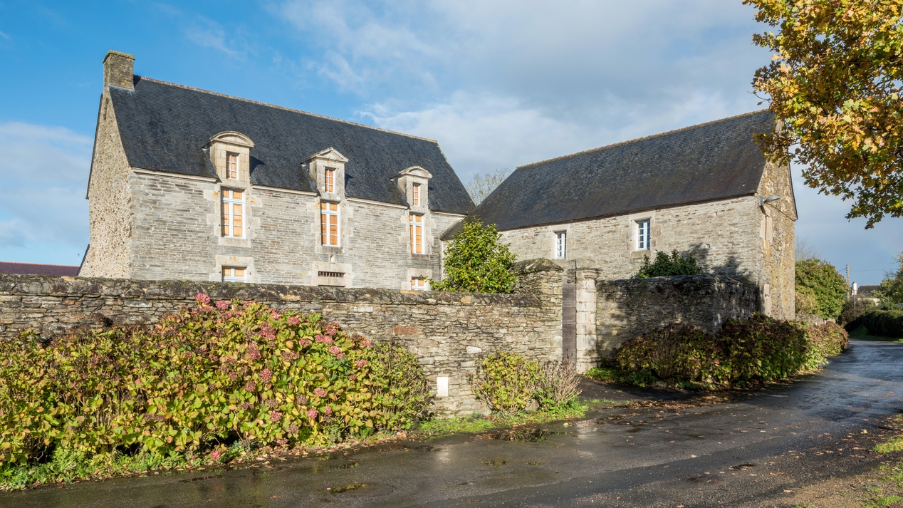 Au bourg, rue Maison des Toiles. Maison de marchand de toile et pilerie, début du 18e siècle. Vue générale sud-ouestImmatriculation