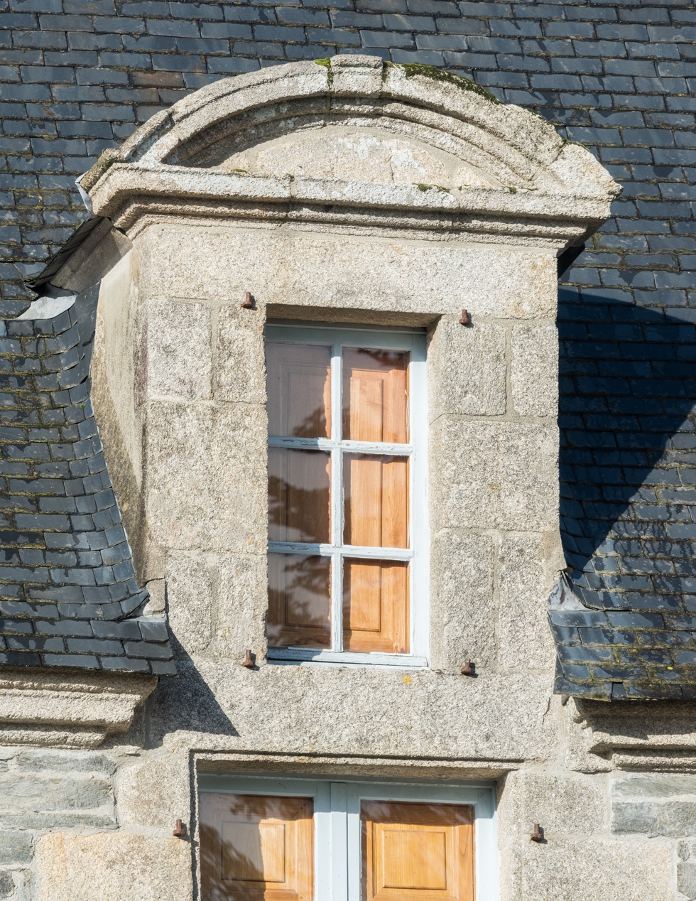 Logis. Façade sud. Détail d'une lucarne à fronton cintréImmatriculation